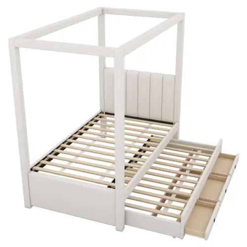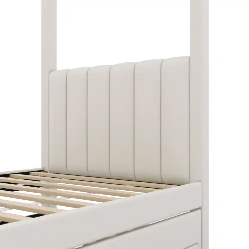 [Bellemave]  Twin/Full Size Upholstery Canopy Platform Bed with Trundle and Three Storage Drawers[Bellemave]  Twin/Full Size Upholstery Canopy Platform Bed with Trundle and Three Storage Drawers[Bellemave]  Twin/Full Size Upholstery Canopy Platform Bed with Trundle and Three Storage Drawers