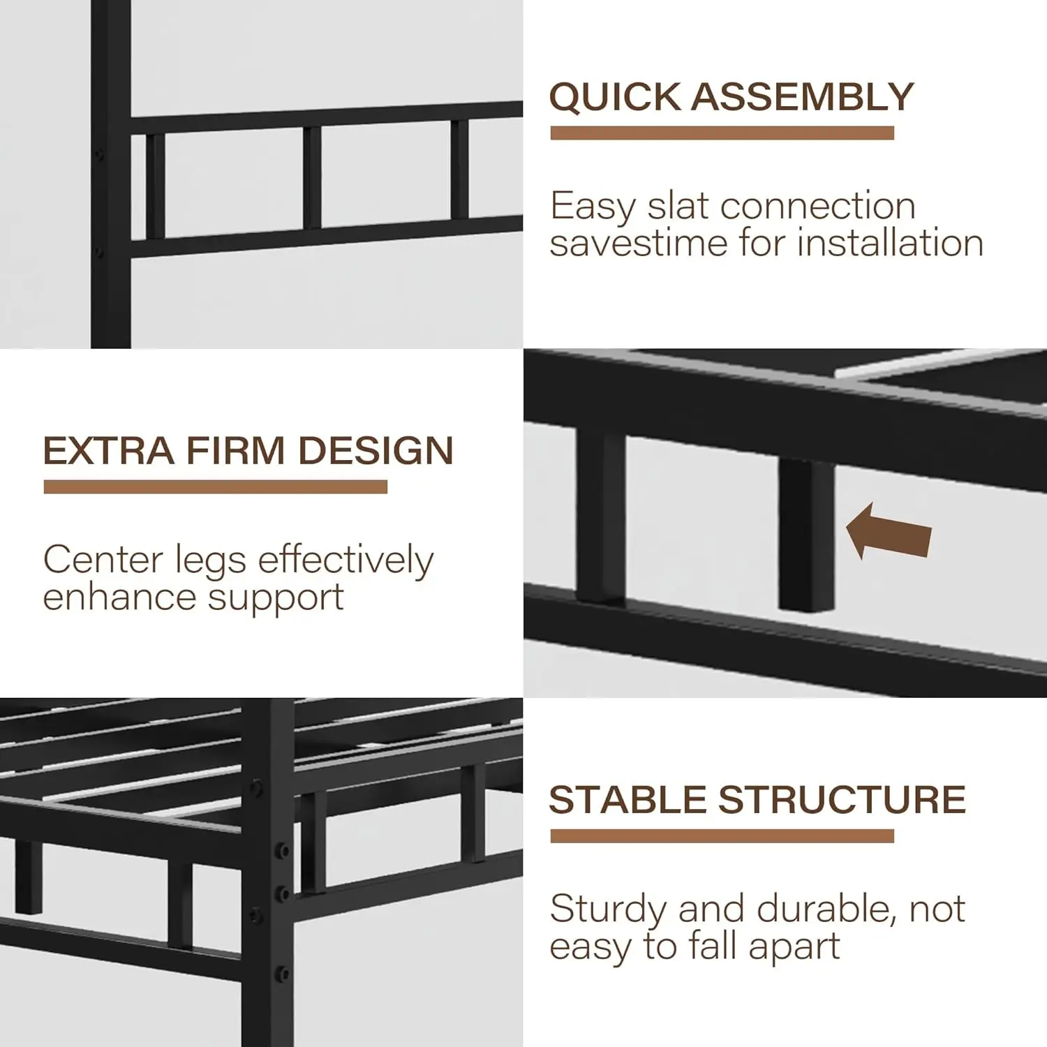 ·No Box Spring Needed: Sturdy metal slats support and extend the life of your latex, memory foam or spring mattress without the need for a box spring for added convenience