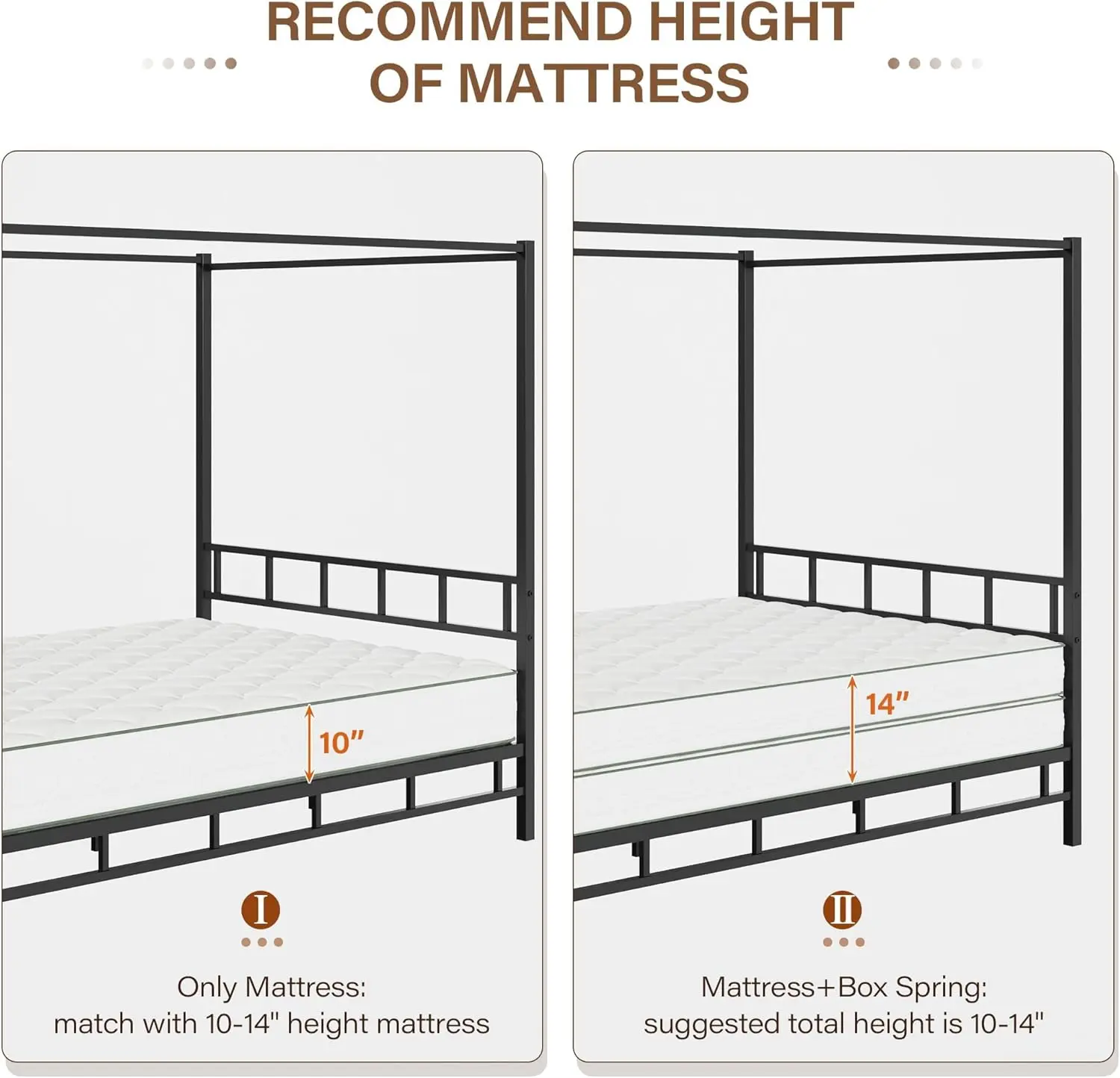 ·Strength and Elegance: The bed frame uses a high-quality iron frame that has been carefully polished, and every inch exudes a natural luster and warmth. The solid structure ensures the stability and durability of the bed