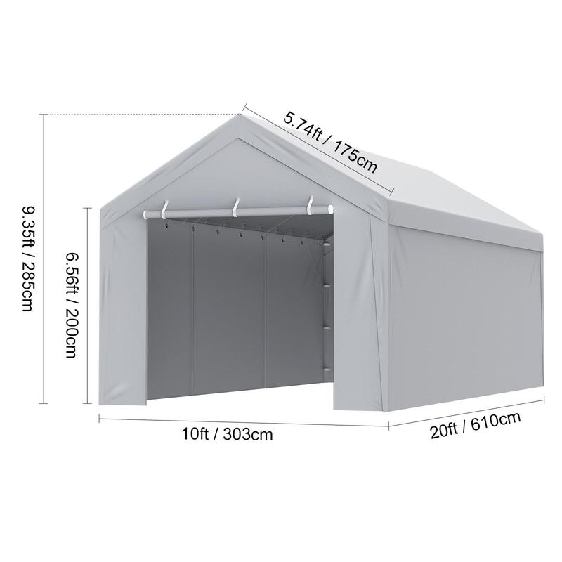 • 10'x20' Size: This canopy fabric, including both the top and side panels, features a 5-panel front door with a dual zipper structure. It is designed for replacing canopy fabric on 10'x20' garage frames. The space is ample, and the dimensions are perfectly fitting (this product includes only the canopy fabric, frame not included).