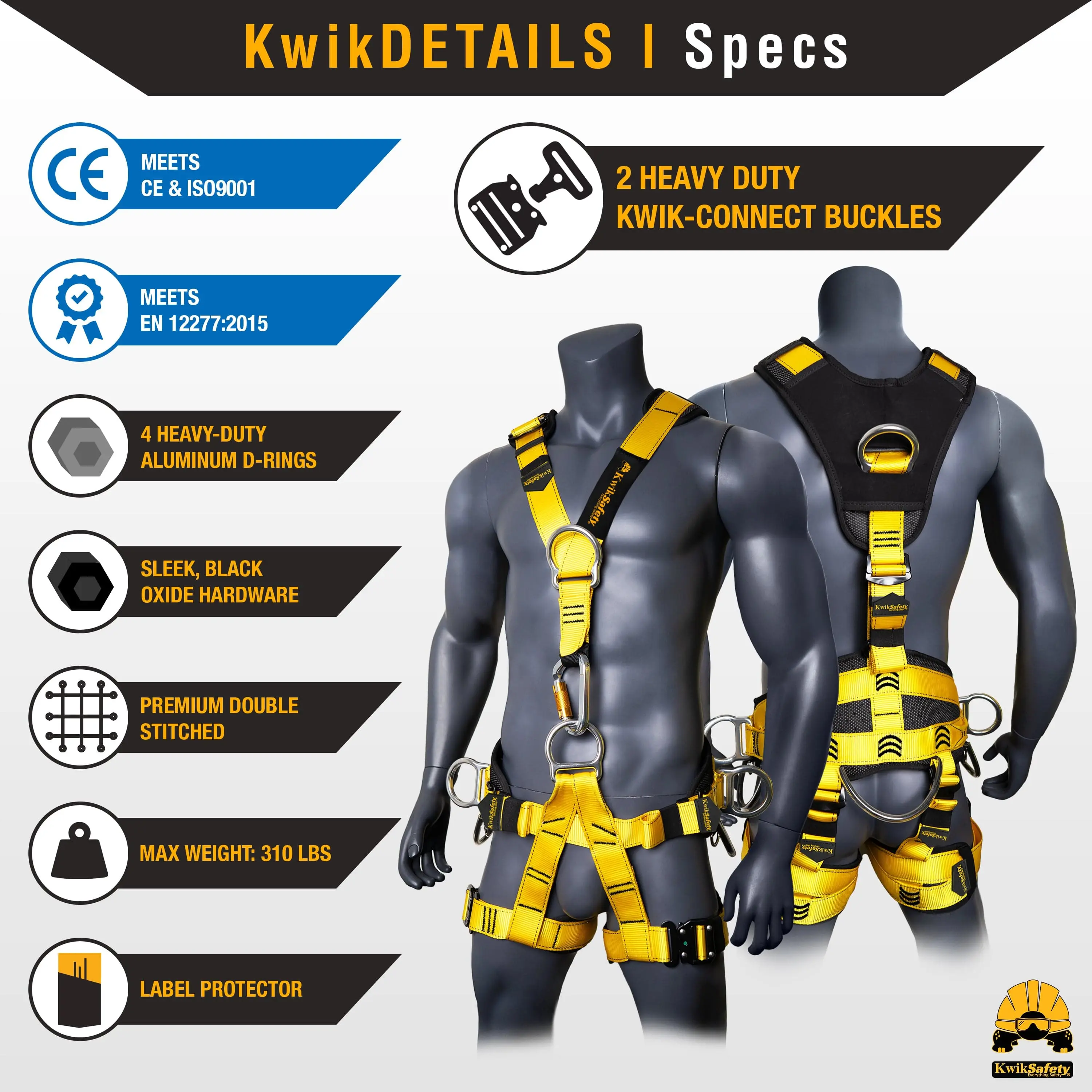 ·Adjustable Straps: The harness is designed to accommodate users within a capacity range of 130-310lbs (59-140kg), 4'10" - 6'6" (147-198cm) due to the adjustment points.