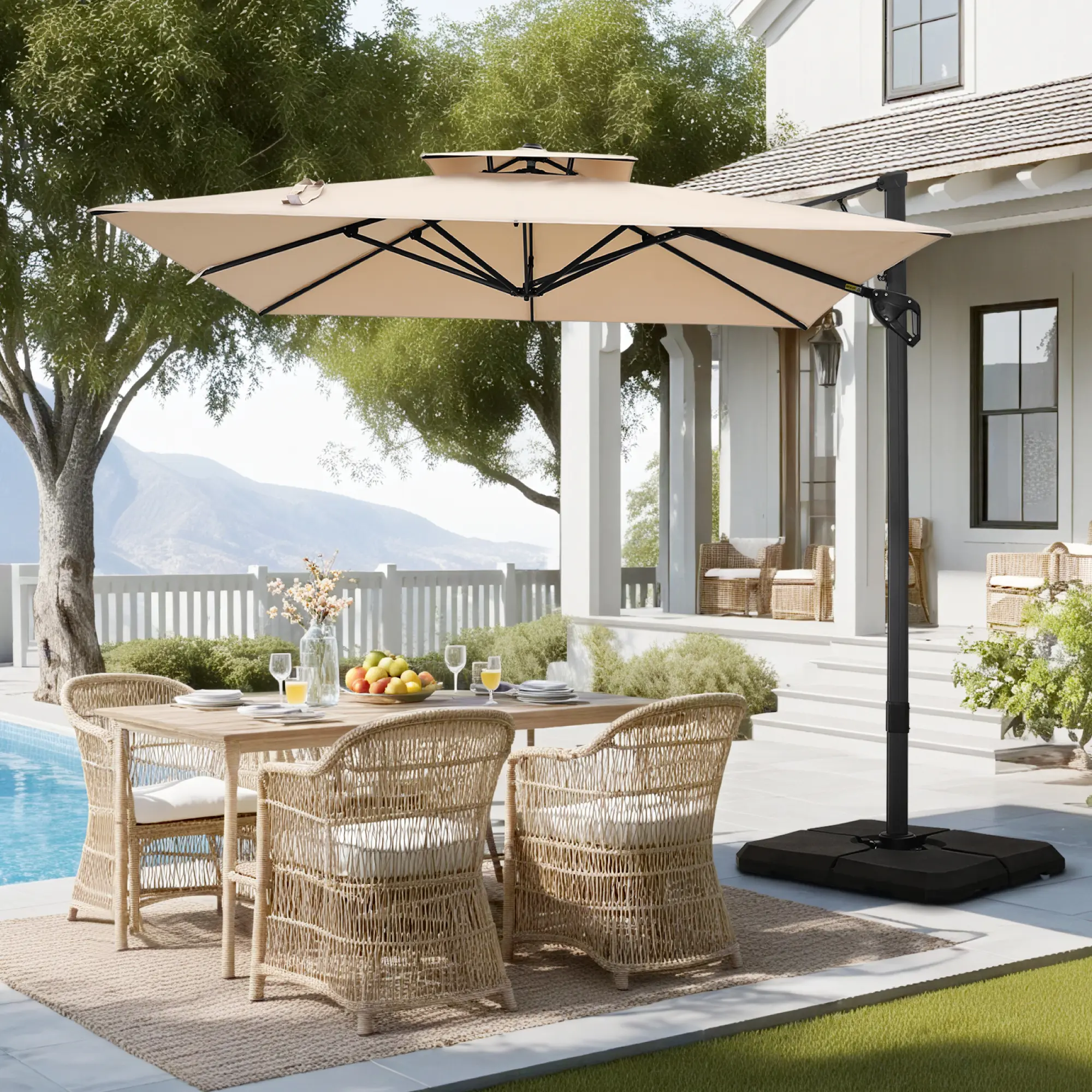PHI VILLA 9ft X 12ft Cantilever Patio Umbrella with 360° Rotation, Heavy Duty Hydraulic Double Umbrella Windproof for Outdoor Use, Summer's Day