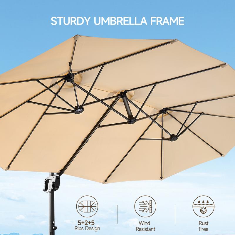 ·Ultra-Sturdy Rib Structure: The 8x13ft large patio umbrella is engineered with a 5+2+5 long rib and 5+6+5 short rib steel frame and thickened center connecting rib for unmatched stability against gusts of wind and inclement weather while guaranteeing years of reliable outdoor use