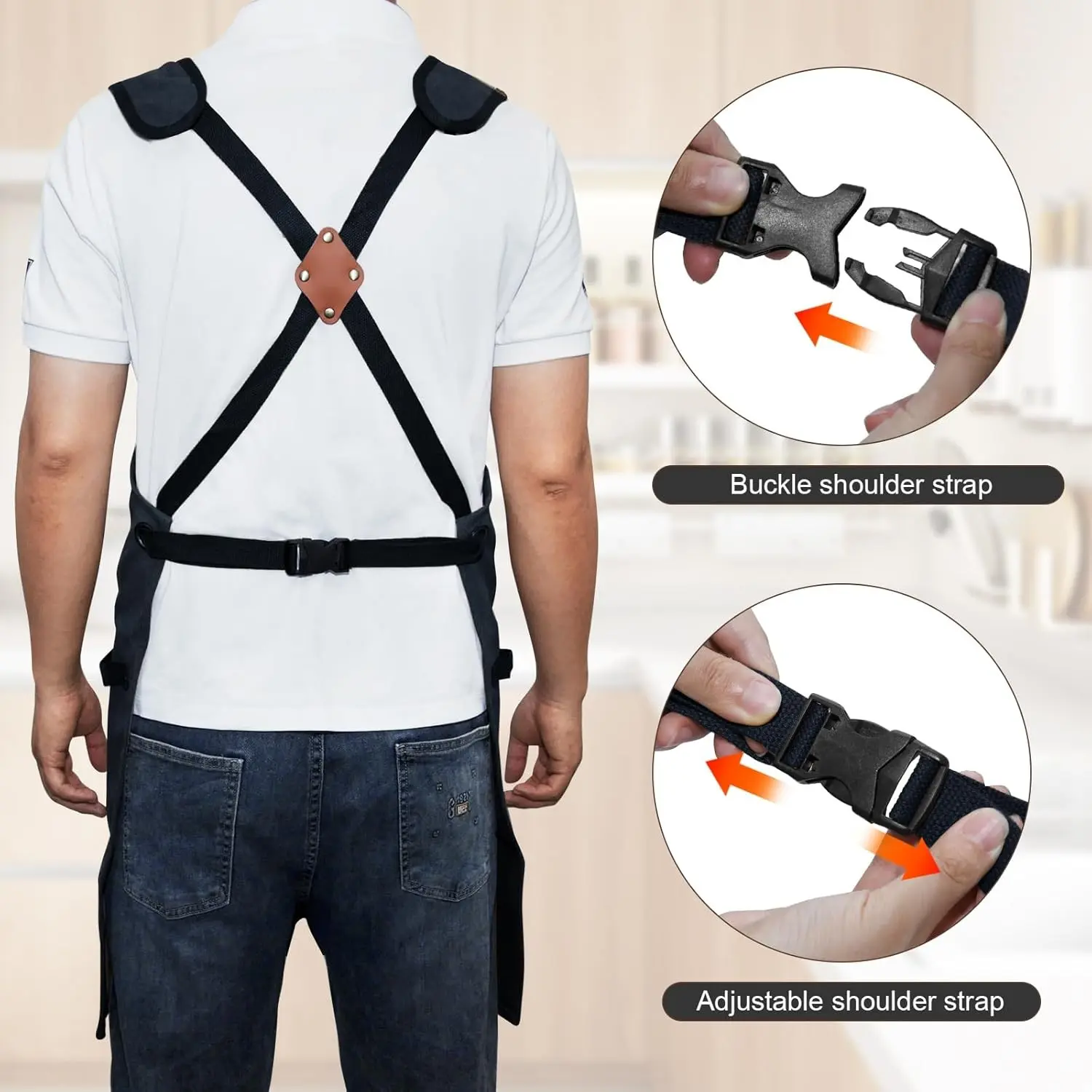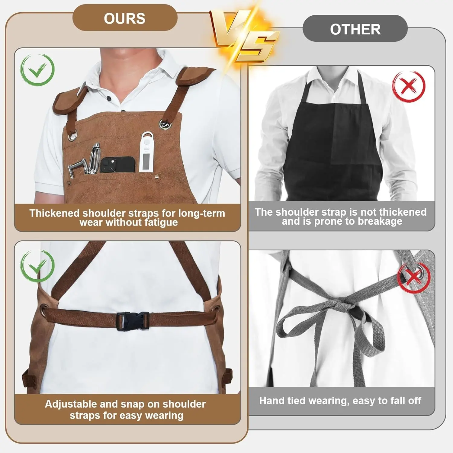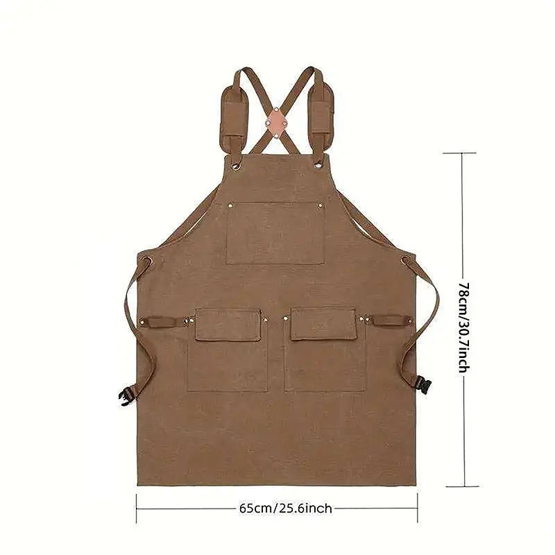 Canvas Apron with Multiple Pockets, Durable Apron with Adjustable Shoulder Straps, Ideal for Carpenters & Garden Maintenance Workers