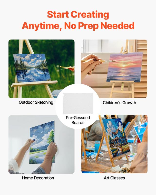 ·Ready to Use: The painting canvas panels are pre-treated with triple layers of gesso, so no additional preparation is needed. Its smooth, ideal surface lets you simply take it out and start creating your masterpiece right away.
