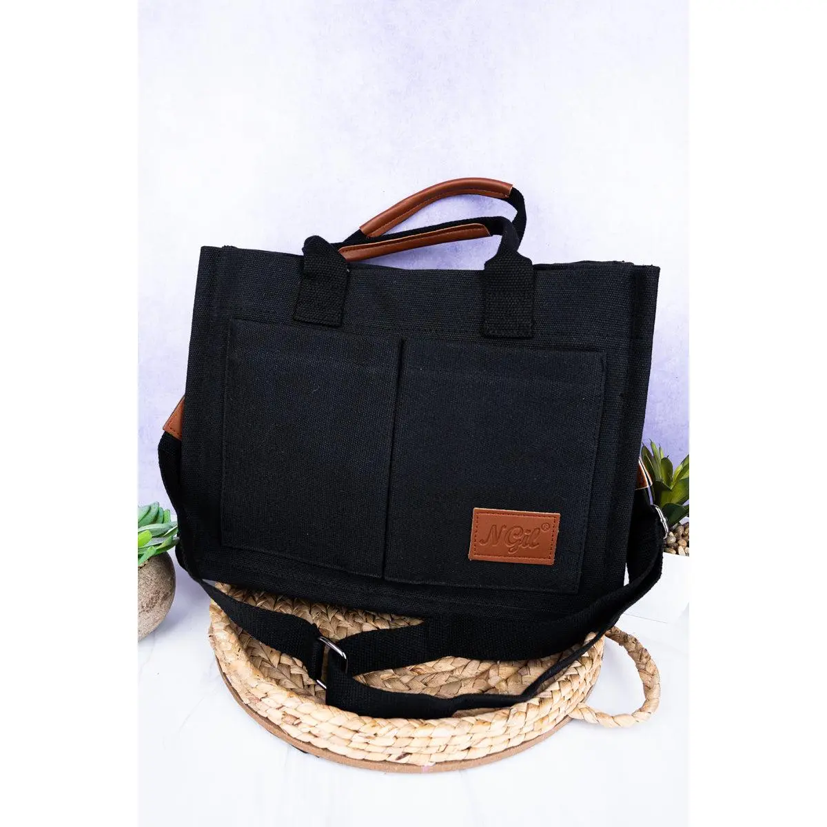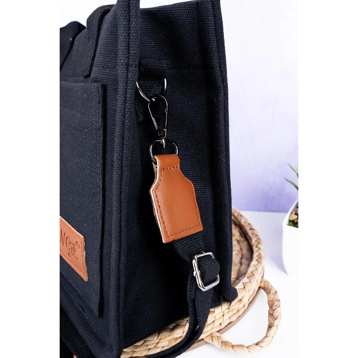 ·Faux Leather Logo on Front