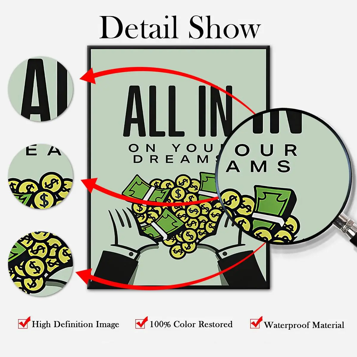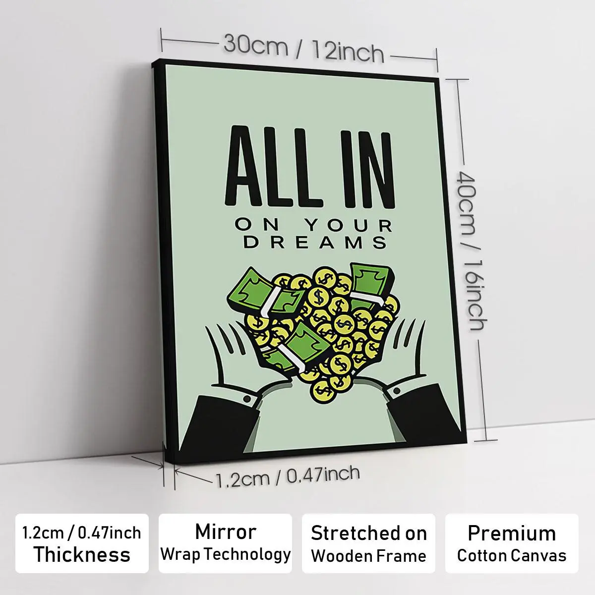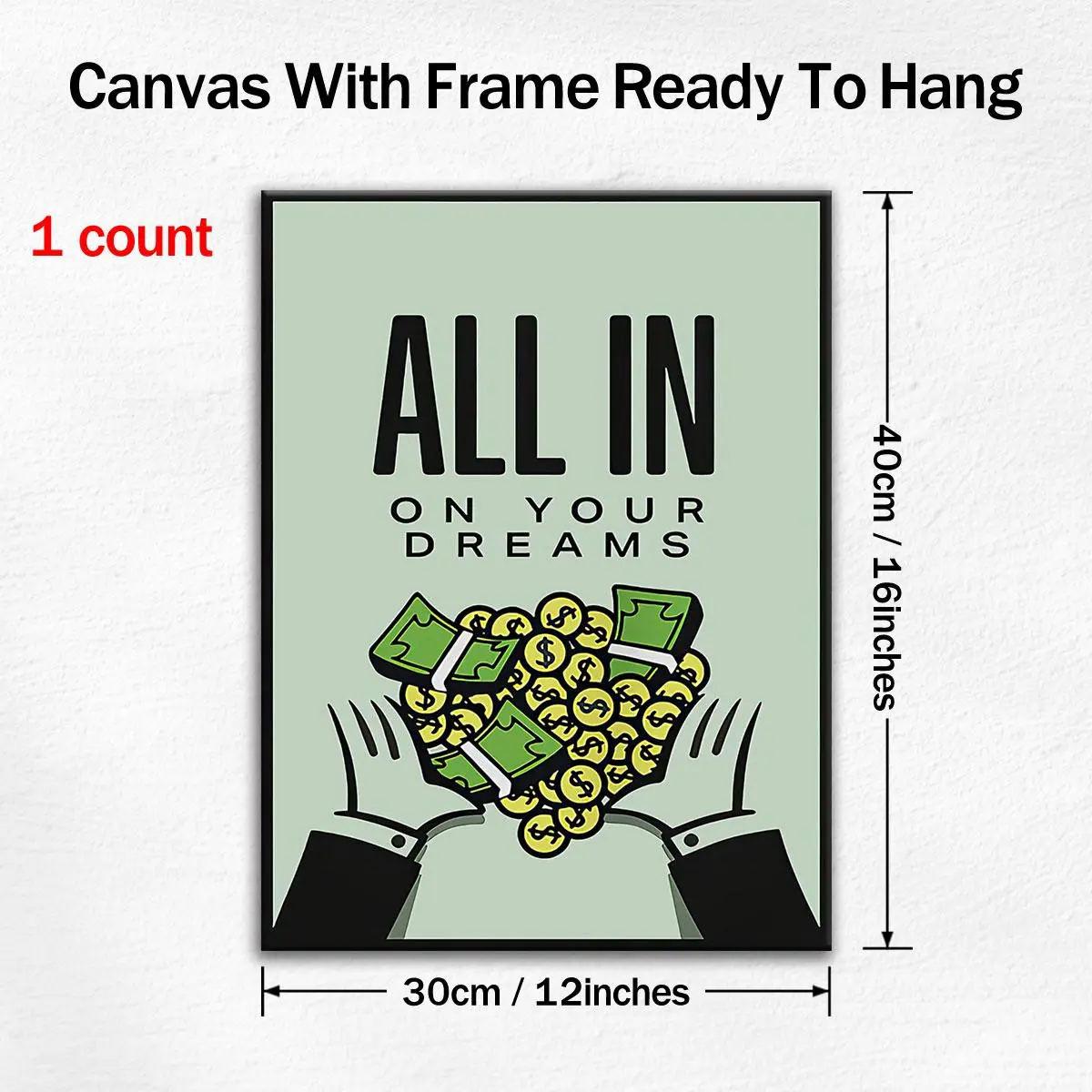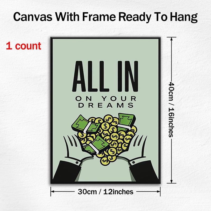 Money & Letter Pattern Painting with Wooden Frame, 1 Count Modern Canvas Wall Art, Unique Artwork, Wall Decor for Home Living Room Bedroom Office