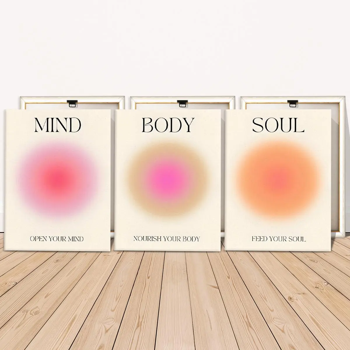 Wooden Framed Canvas Painting, 3 Counts/set Modern Wall Art, Angel Halo Canvas Poster, Wall Decor for Home Living Room Bedroom Office