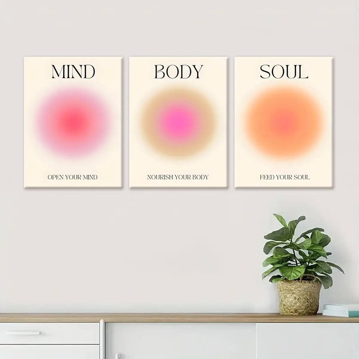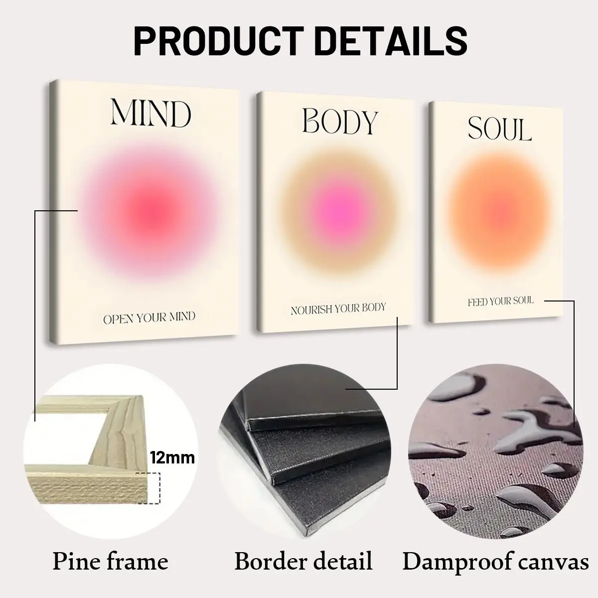 5. Wooden Framed Canvas Painting, 3 Counts/set Modern Wall Art, Angel Halo Canvas Poster, Wall Decor for Home Living Room Bedroom Office