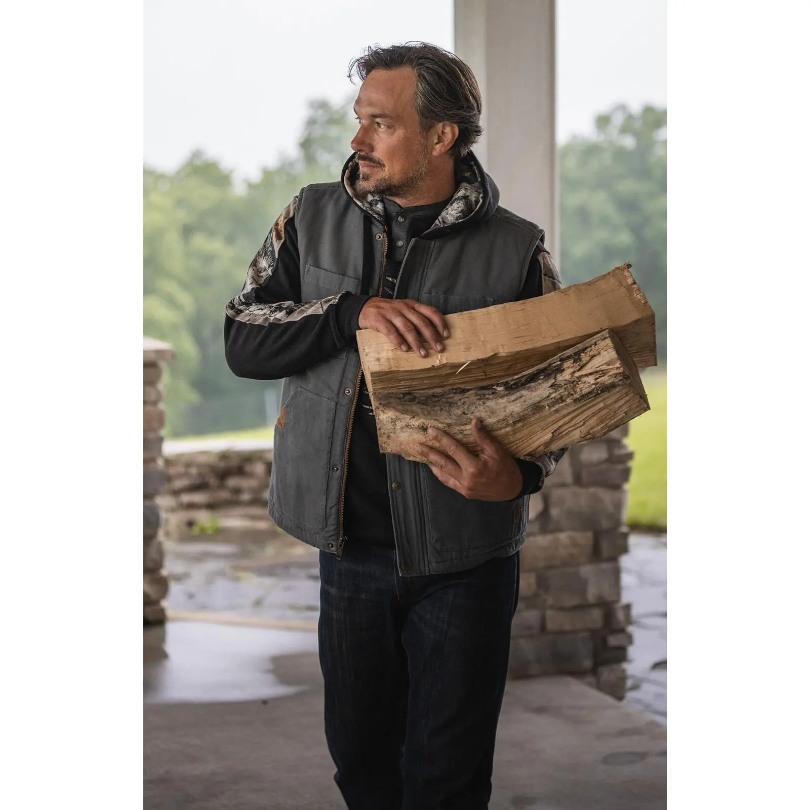 Rugged yet broken-in, our Men's Canvas Cross Trail Heavy-Duty Vest is built for the long haul. With a water-repellent finish and quilted insulated lining, this vest provides dependable warmth and protection in tough conditions.
