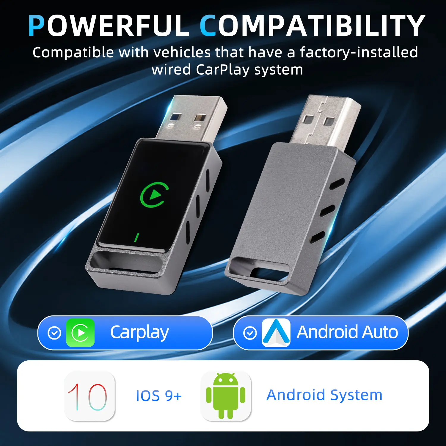 Wide compatibility and flexible use: The wireless adapter is compatible with iphone iOS 10 or higher, as well as Android 12 and above. In addition, the car wireless adapter is equipped with a USB-to-USB-C converter, perfectly adapting to both USB and USB-C car ports. Before purchasing, you need to confirm whether your car is equipped with wired Carplay or Android Auto.