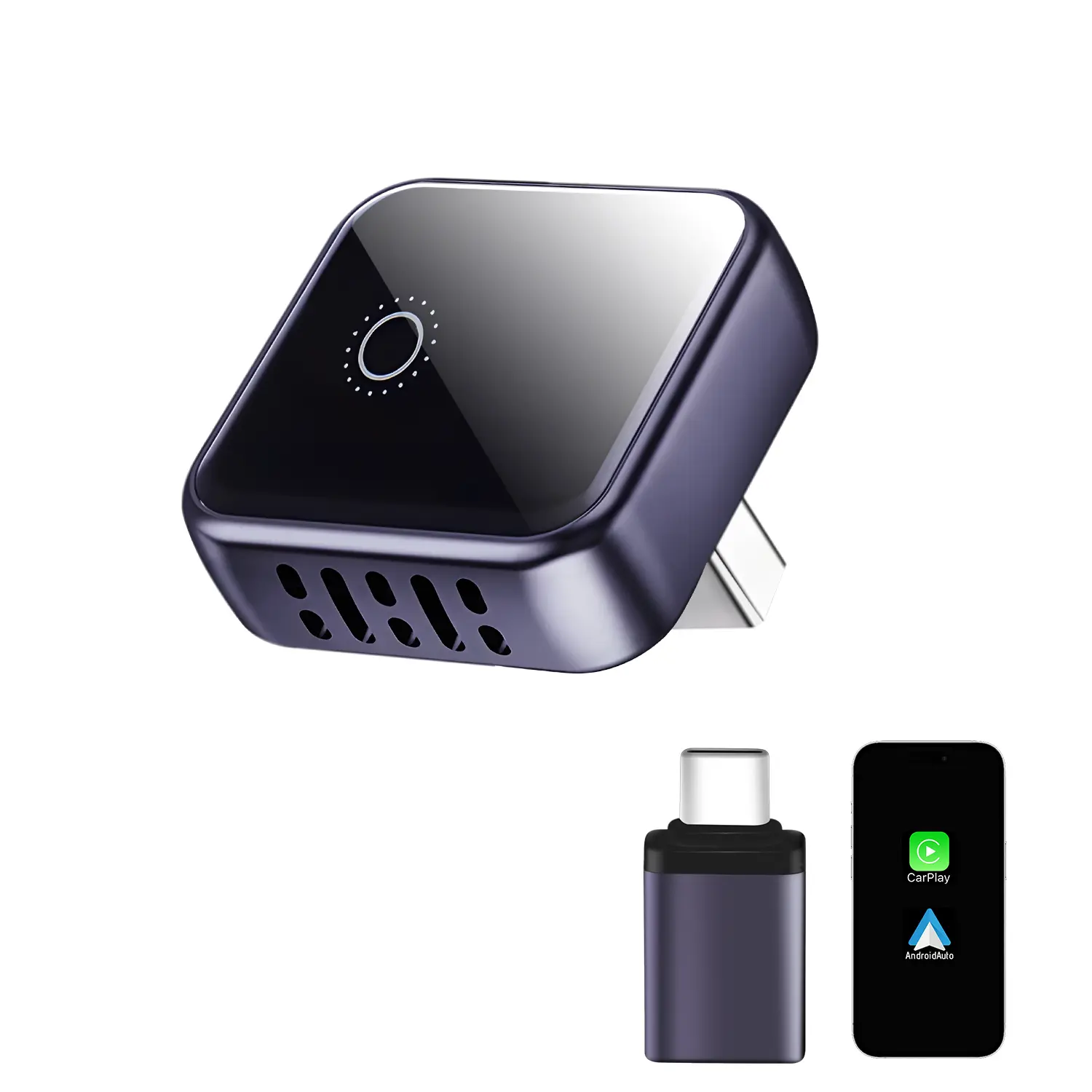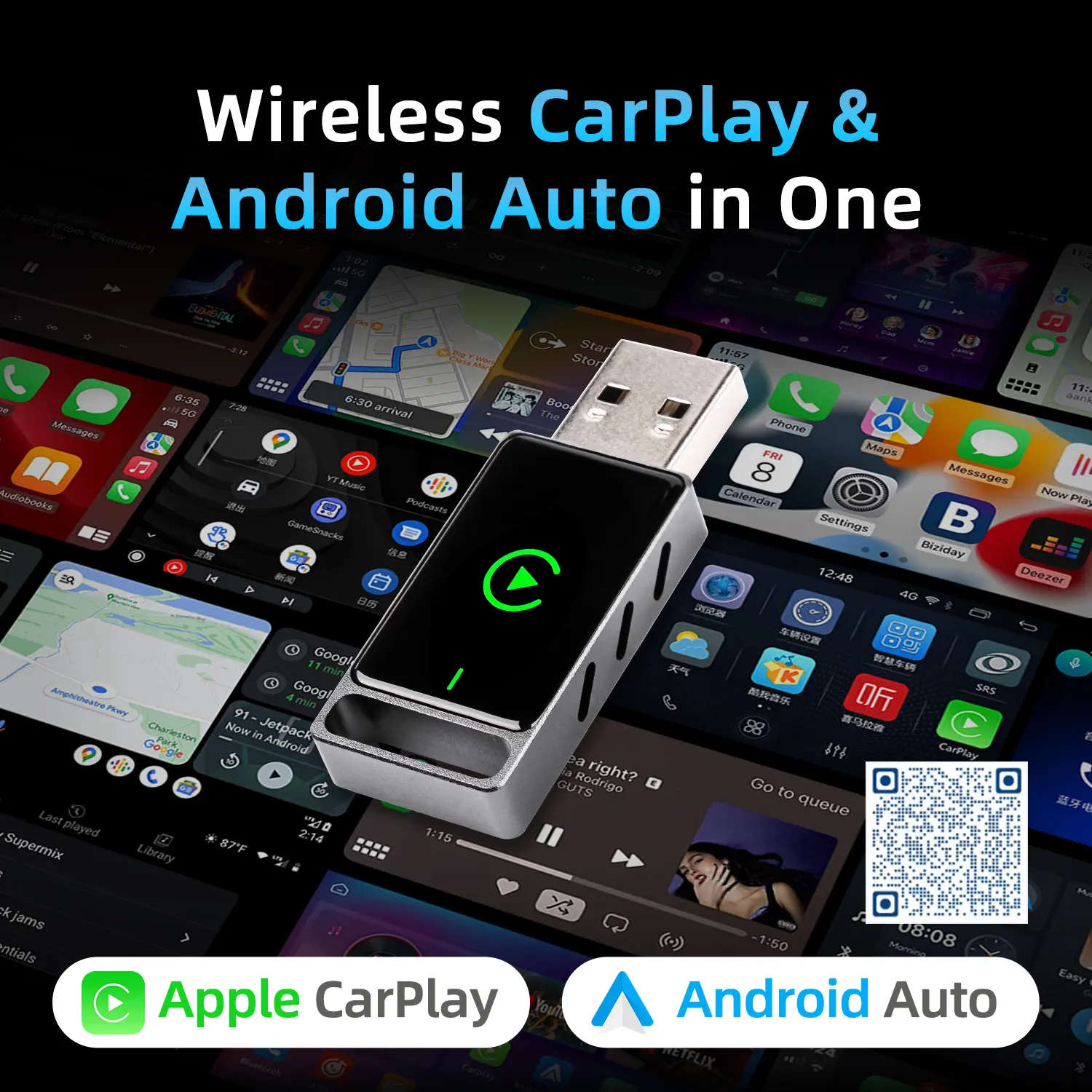 2-in-1 wireless CarPlay & Android Auto adapter: Effortlessly upgrade your car's wired CarPlay or Android Auto system to wireless! Say goodbye to messy cables and embrace the convenience of hands-free connectivity. This wireless adapter supports navigation, music streaming, voice commands, calls, SMS and more without the need for complex setup - just plug the product into the USB/Type-C cable interface of the original car and enjoy instant connectivity, ensuring a cleaner in-car environment, safer driving and a more enjoyable journey.