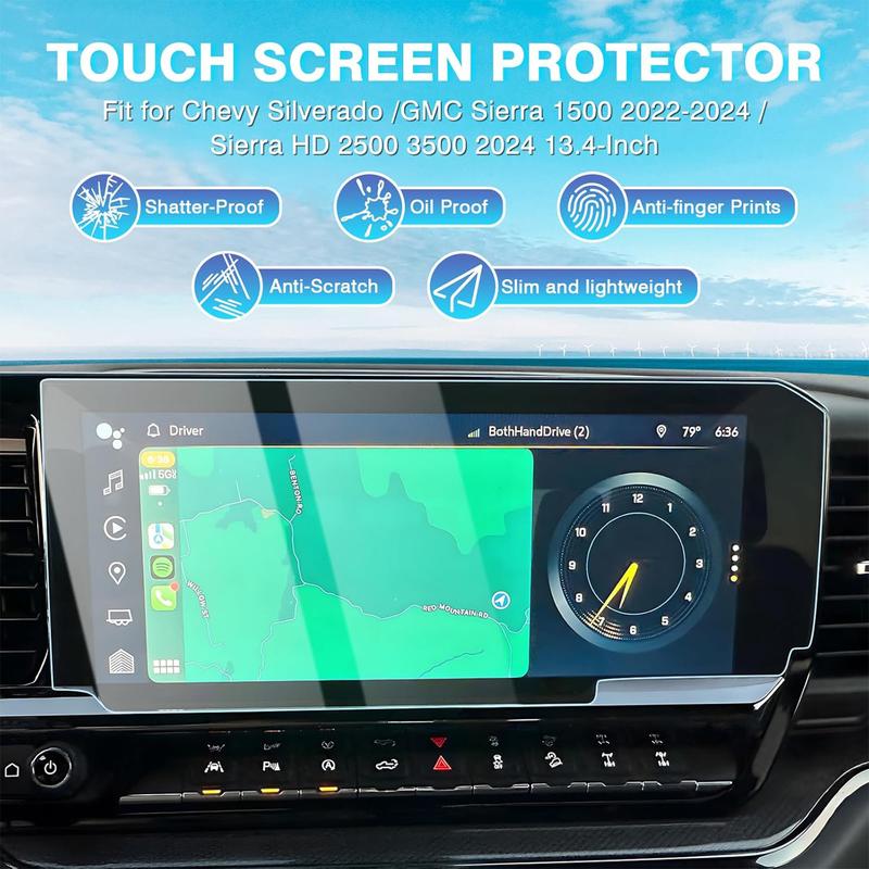 The Canvcle 2 Pack 13.4-Inch Anti Glare Tempered Glass Screen Protector is a perfect accessory for 2022-2025 Chevy Silverado and GMC Sierra 1500/2500HD/3500HD. It offers comprehensive protection, anti-glare, anti-fingerprint, and great touch response, ensuring clear and smooth viewing. Installation is super easy, making it a reliable choice for screen protection.