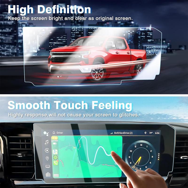 ·2PCS 2025 Silverado Screen Protectors: Comes with 2 pack in a well-protected box. Enhances the longevity and functionality of your navigation system.