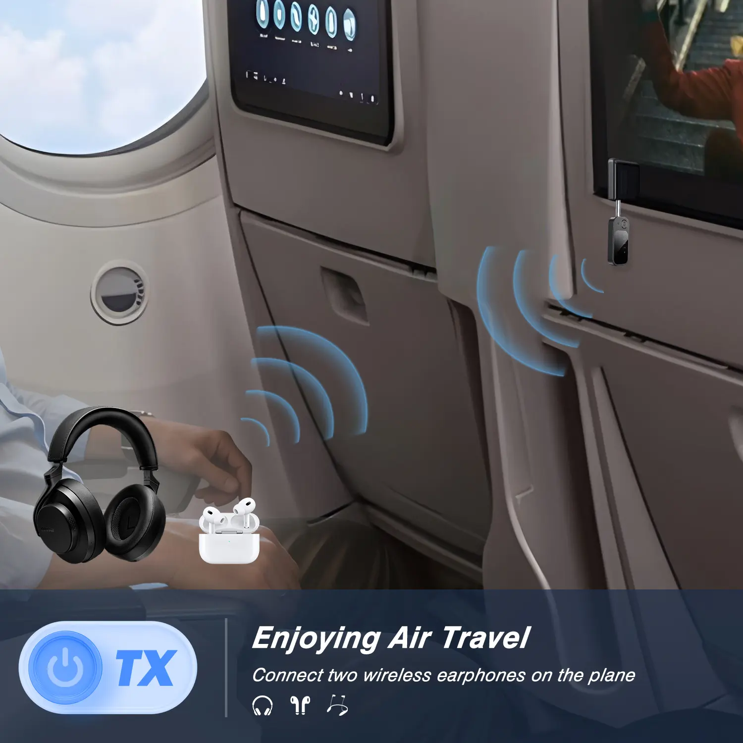 ·Wide compatibility: Equipped with a 3.5mm dual adapter, essential for in-flight entertainment systems. Connects home TVs, tablets, computers, and devices with a 3.5mm jack or AUX interface.