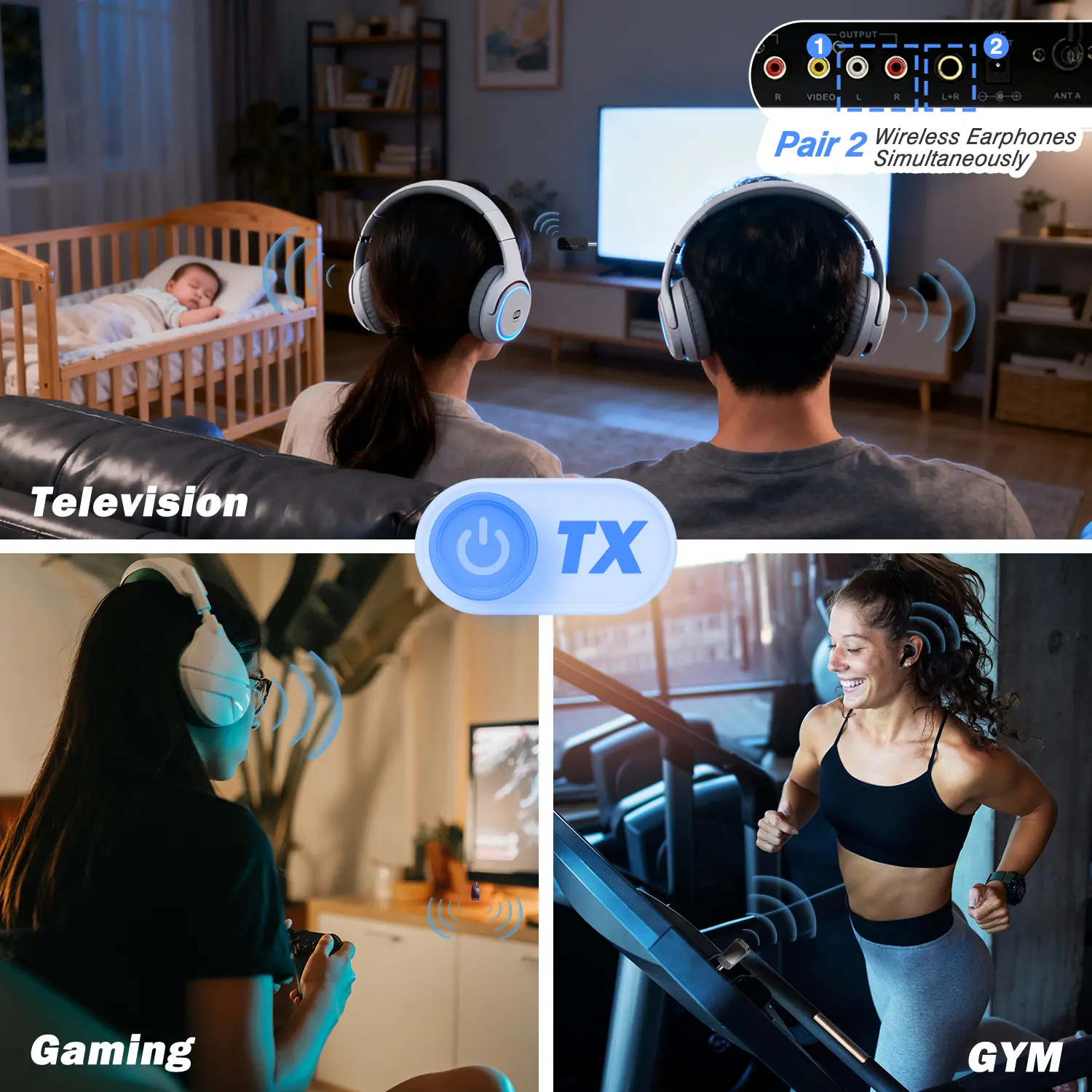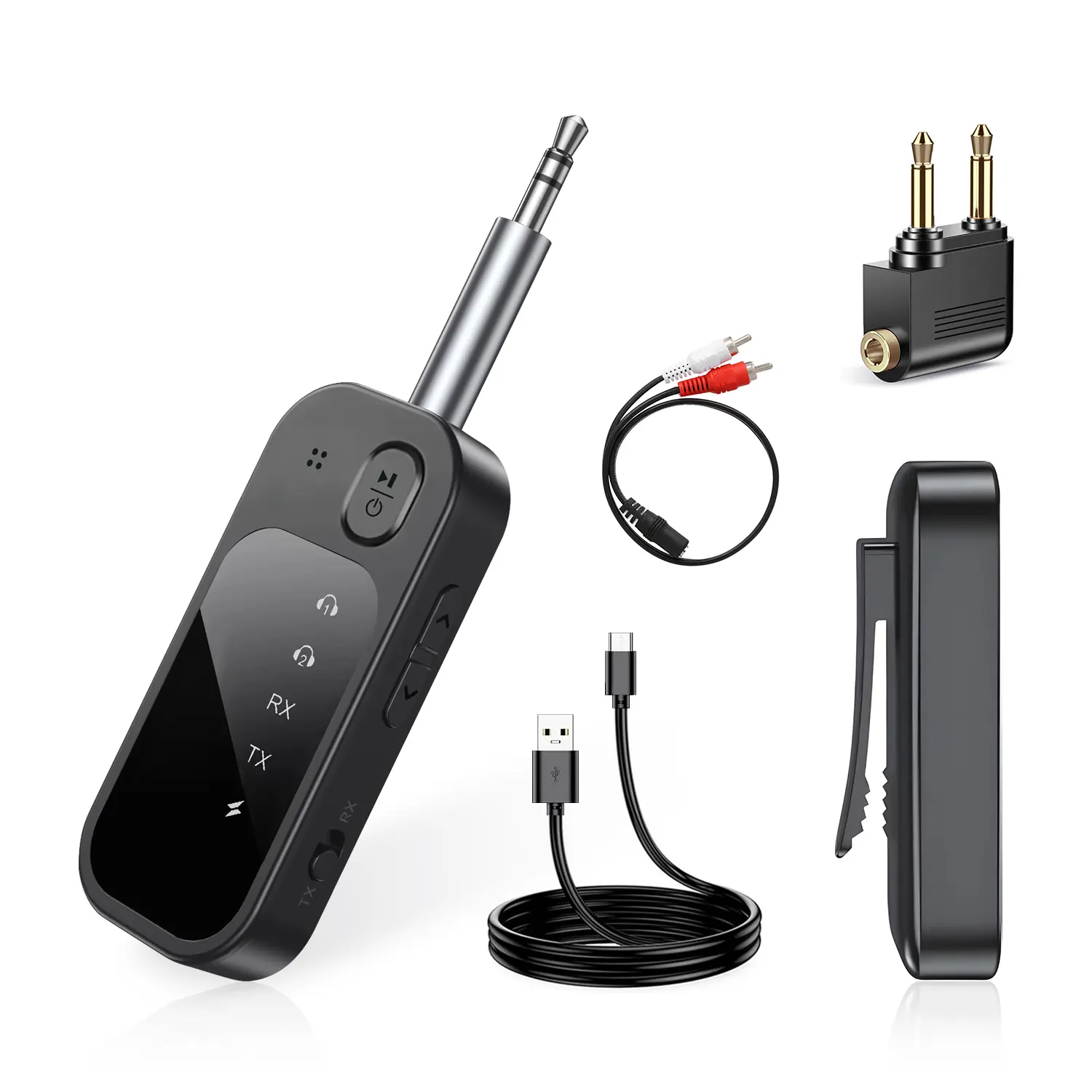 ·Two-to-two Bluetooth transmitter and receiver: Supports both transmission (TX) and reception (RX) modes. In TX mode, it transmits audio from TVs, computers, game consoles, and aircraft to Bluetooth headphones. In RX mode, it serves as a Bluetooth car adapter, connecting smartphones to wired speakers or stereo systems.