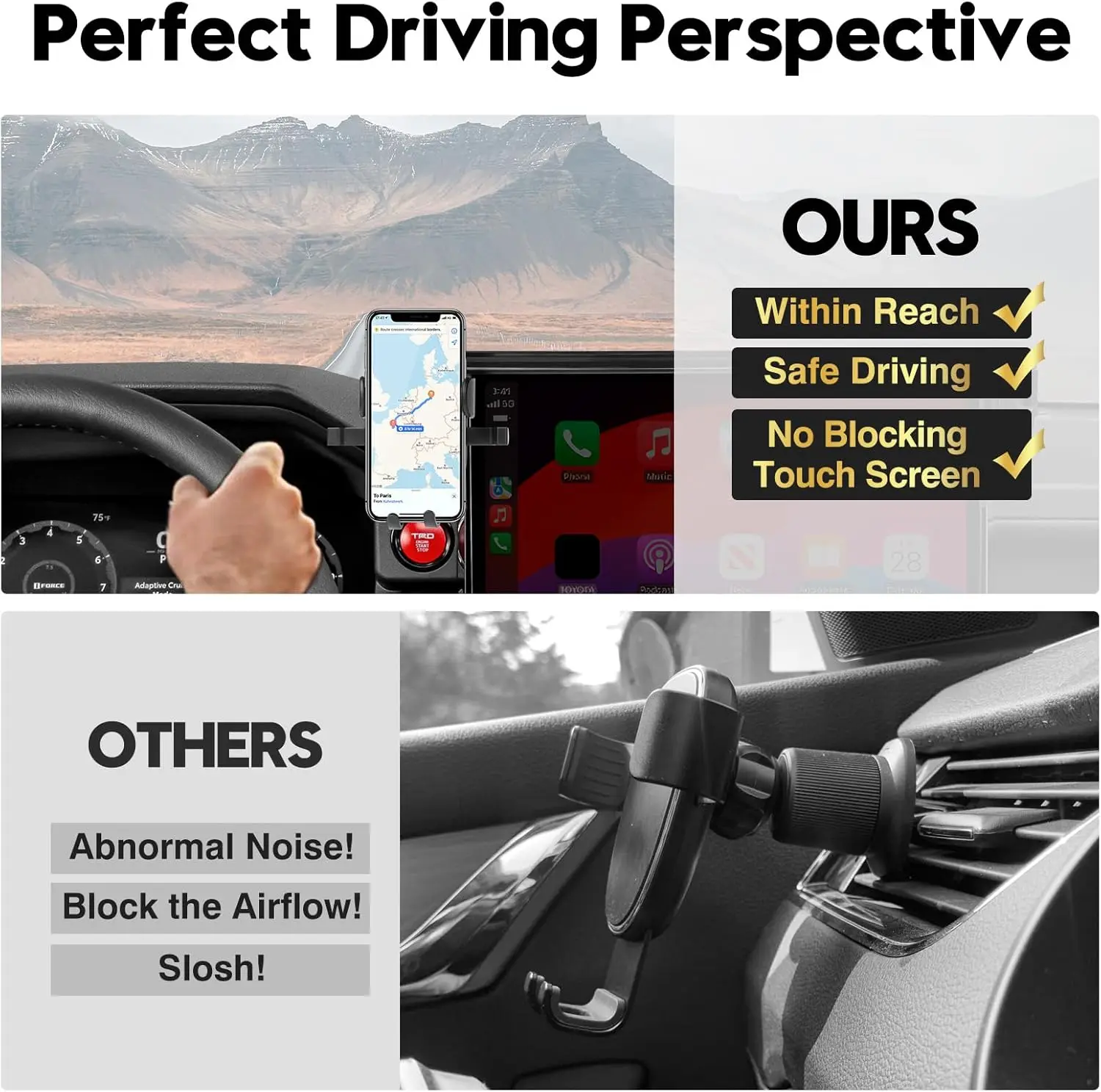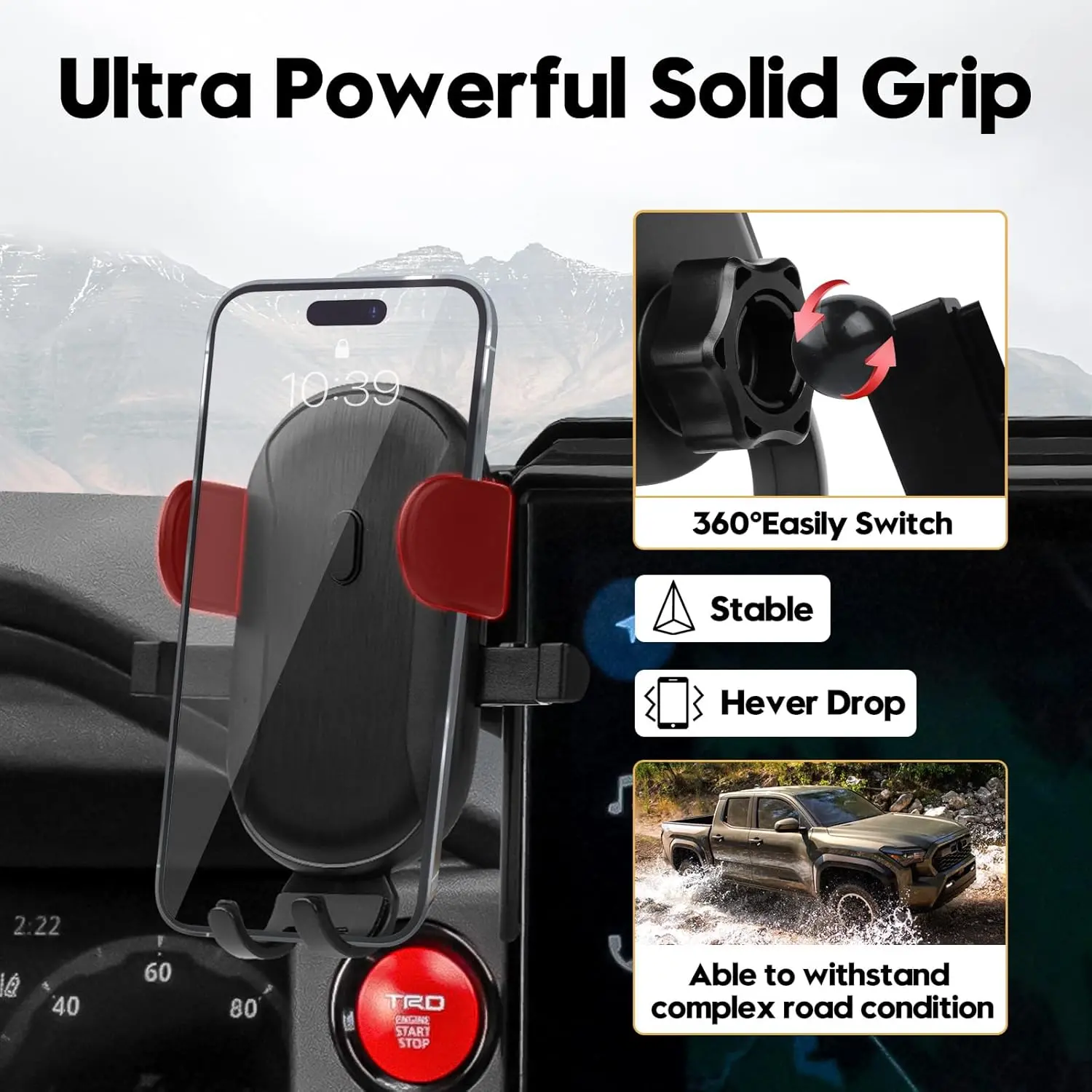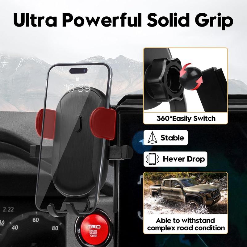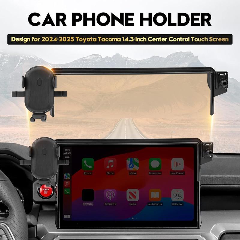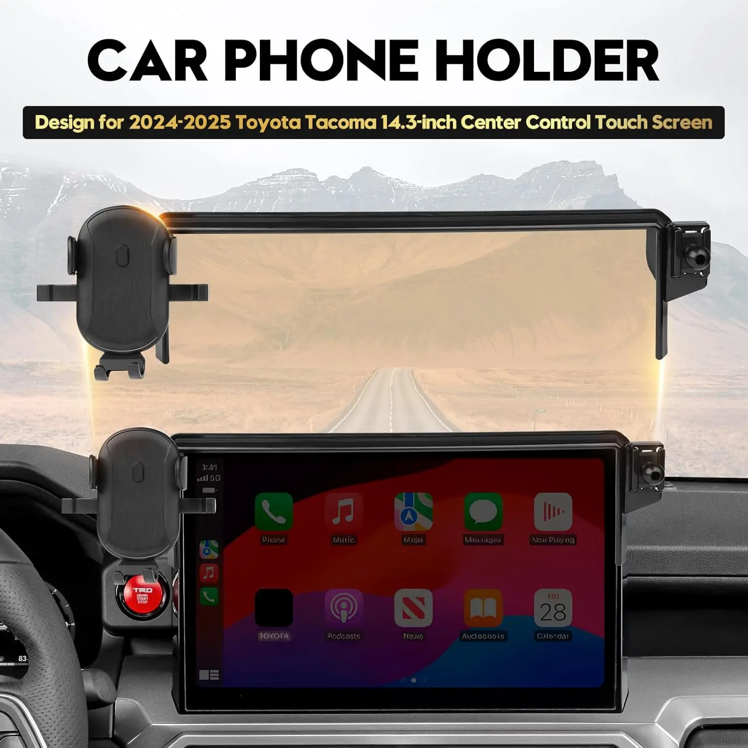Phone holder for Toyota Tacoma: This car phone holder is created specifically for Toyota Tacoma 2024 2025 with 14.3-inch touchscreen. The cell phone holder fits for iPhone and Android all smartphones.