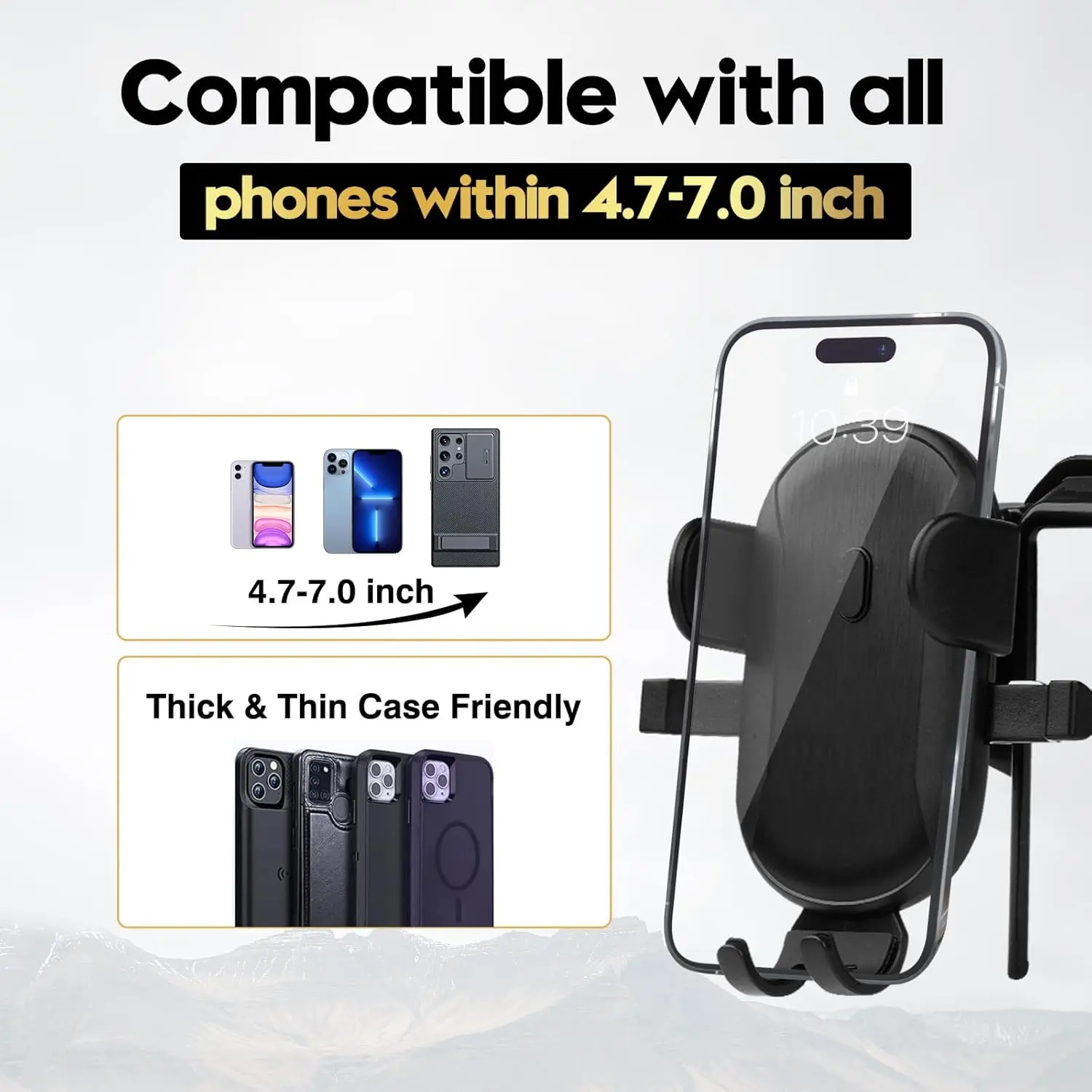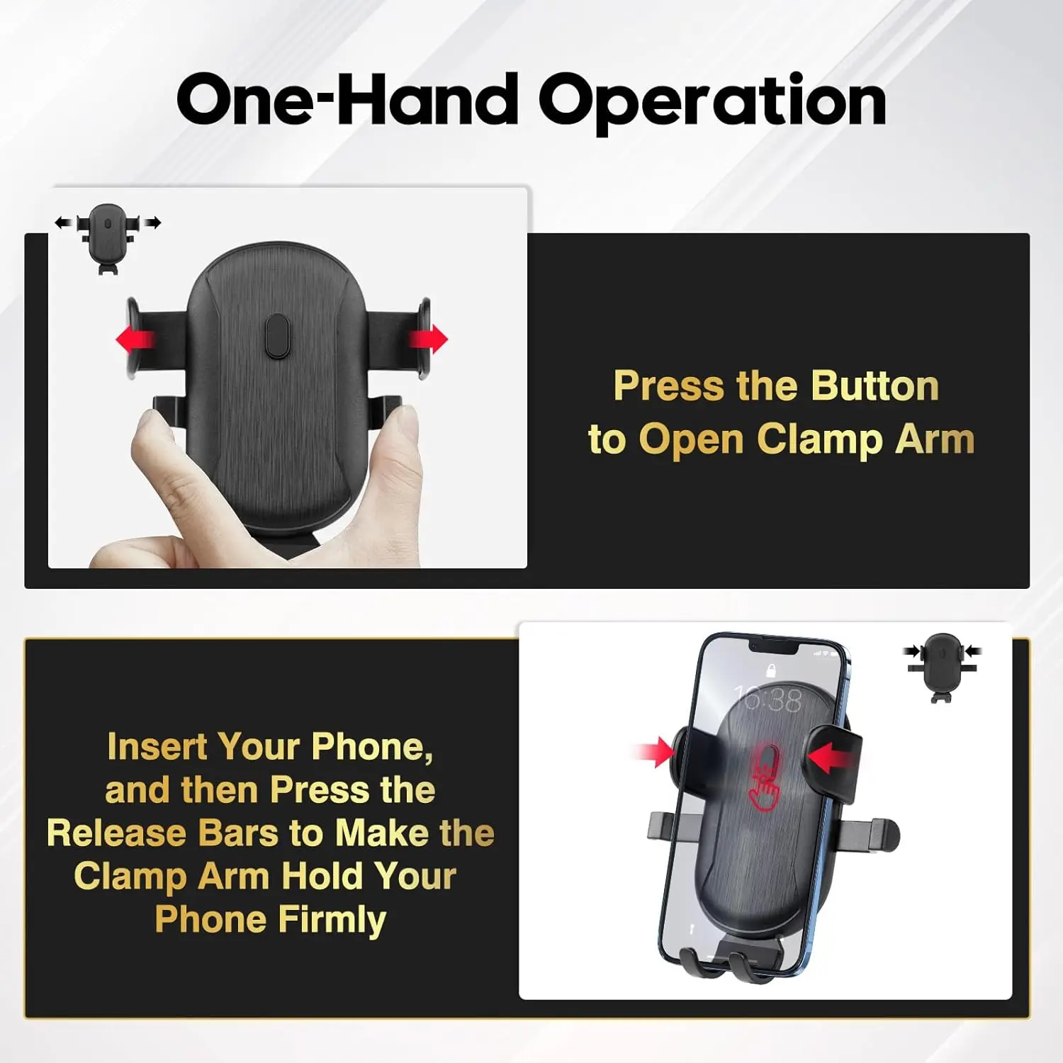 Hold Phone Firmly & One-Hand Operation: The hands-free cell phone mount adopts a 2024-updated stable mechanical structure and offers more than 5 times the stability compared to the conventional cellphone holder. The cellphone holder holds your phone, never dropping, even going over bumps and sharp turns, and ensuring safe driving. Besides, one-touch installation system that allows you to install your phone within seconds. Simplify complexity, enjoy your journey!