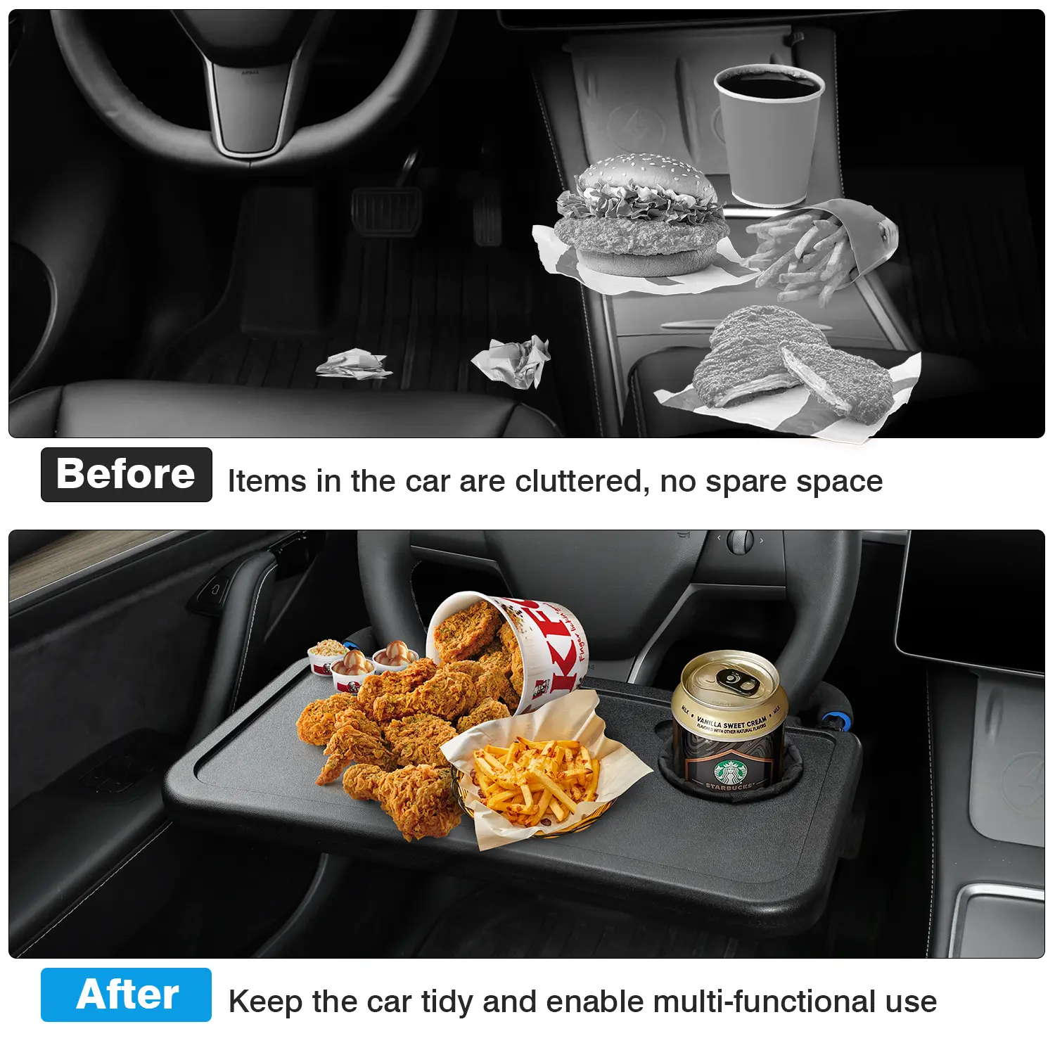 ·Car Seat Stand: The desk is designed to fit on your car steering wheel, providing a convenient surface for your needs. It is a practical addition to your car accessories. 📋
