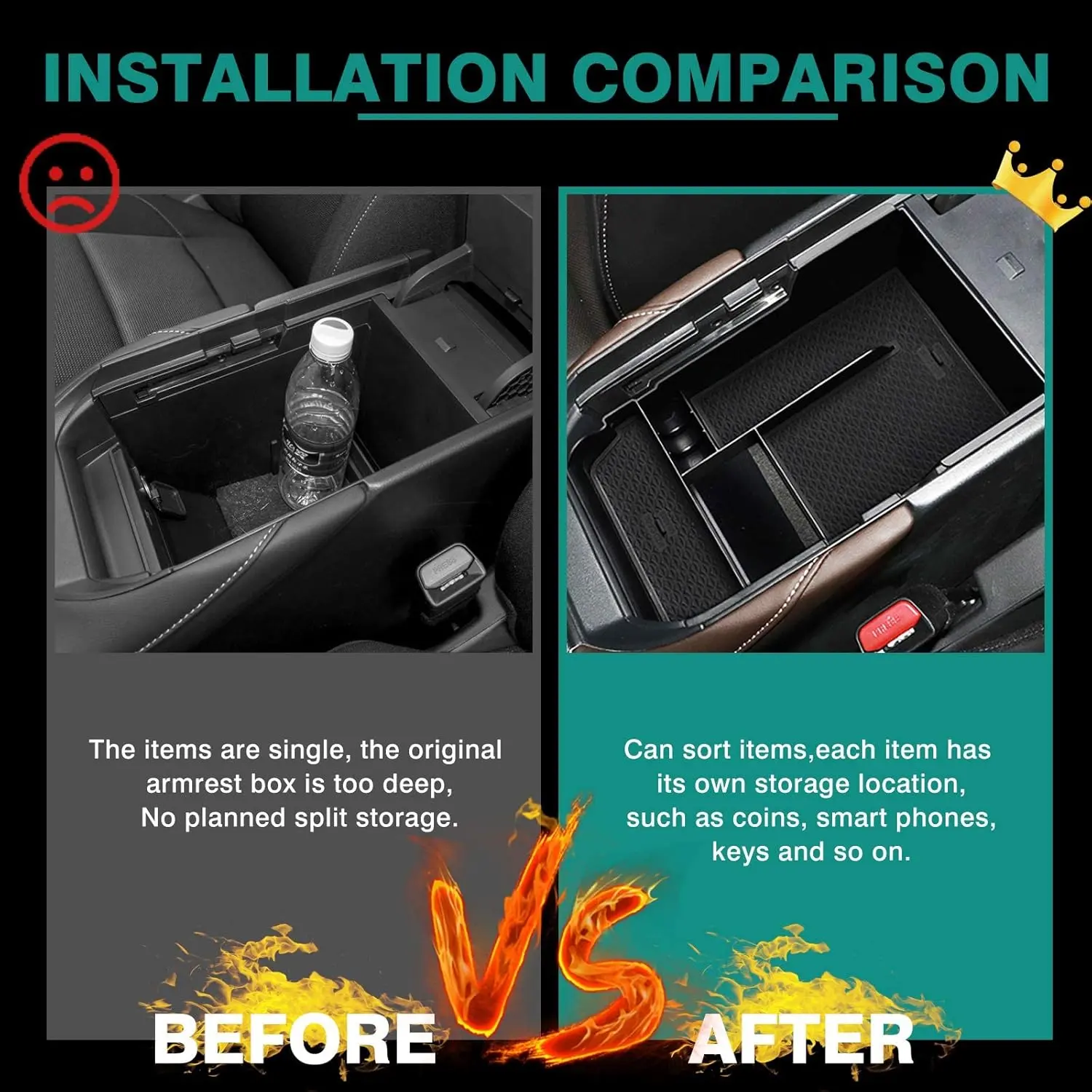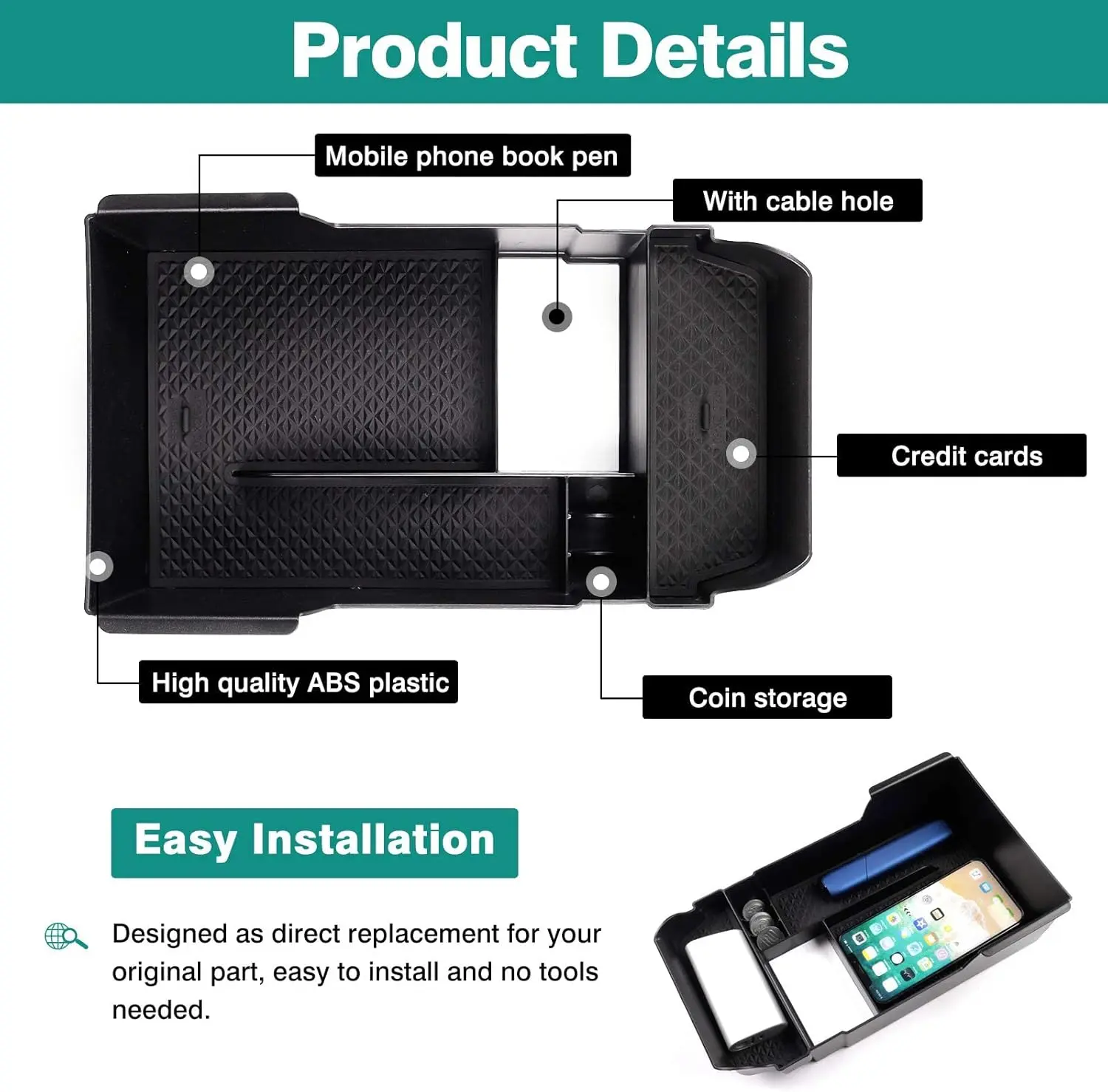 ·Well-made Organizer: It is made of a durable and sturdy ABS shell. The even edge and smooth surface give the armrest storage box an OEM part appearance. Additionally, the provided tasteless and non-toxic rubber liner effectively prevents items from sliding and rattling.