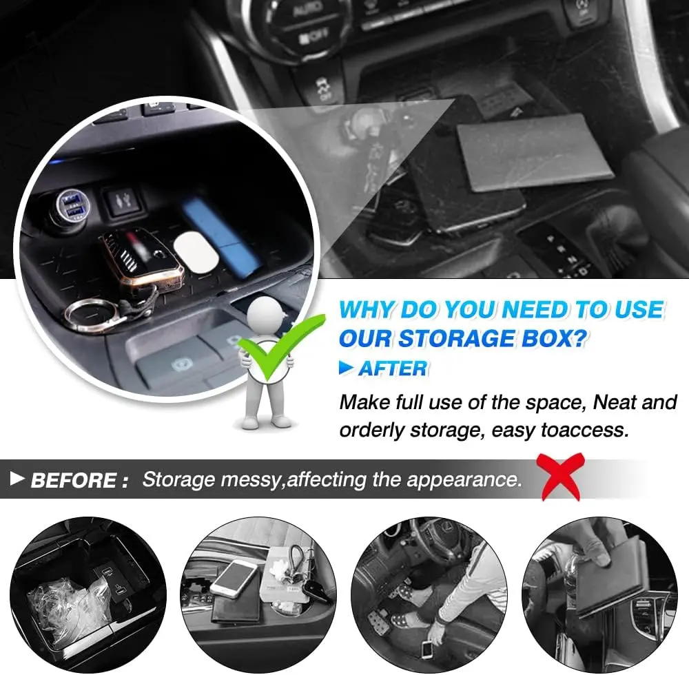 Extra Storage: Canvcle glove box organizer makes full use of every inch of space in your armrest box. It can ensure your car is not messy and keep small items such as keys, cash, and phone well-organized. Allowing you to have a clutter-free and organized storage experience!