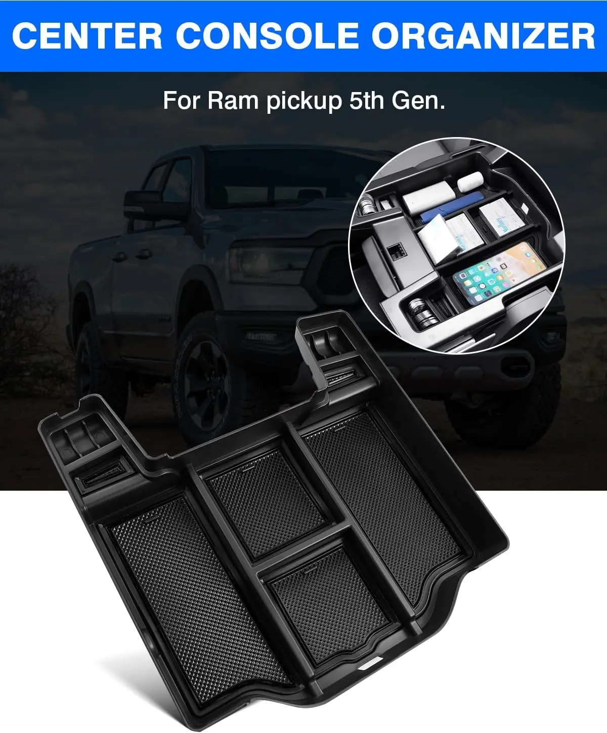 Specific To RAM 1500 2500 3500: Great center console organizer for 2019 2020 2021 2022 2023 2024 2025 Dodge RAM 1500 2500 3500. Absolute accessories for your daily driving.