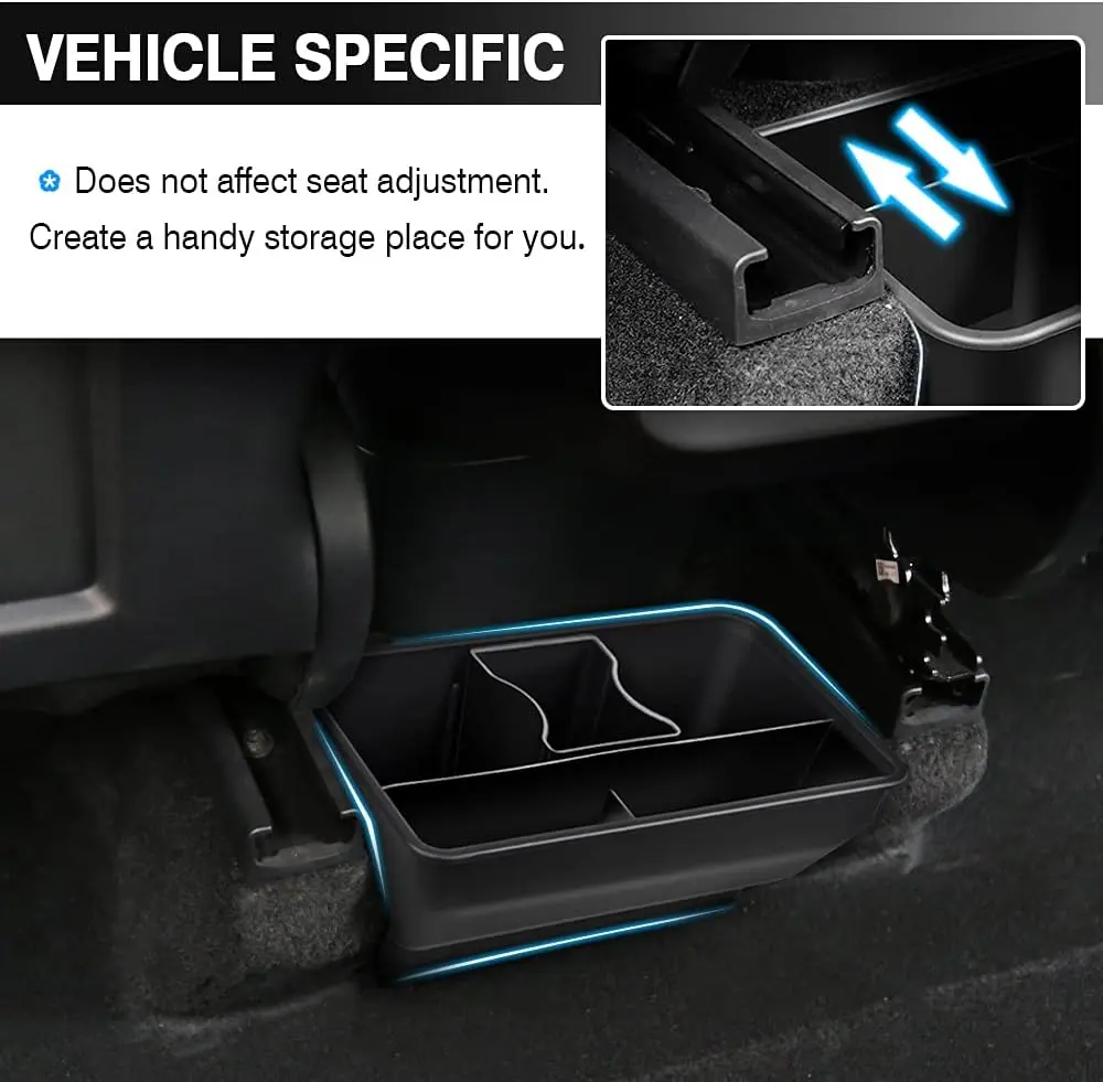 Recycled Materials: Made of excellent sturdy ABS material, this under seat storage box for Tesla Model Y is durable and environmentally friendly.