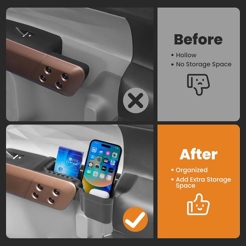 【Increase Extra Storage Space】Maximize your door storage with our maverick door handle pocket tray. Perfect for holding items like keys, cards, phone and so on, our door tray organizer ensure your daily essentials are always within reach. Easy access and removal make it convenient for everyday use.