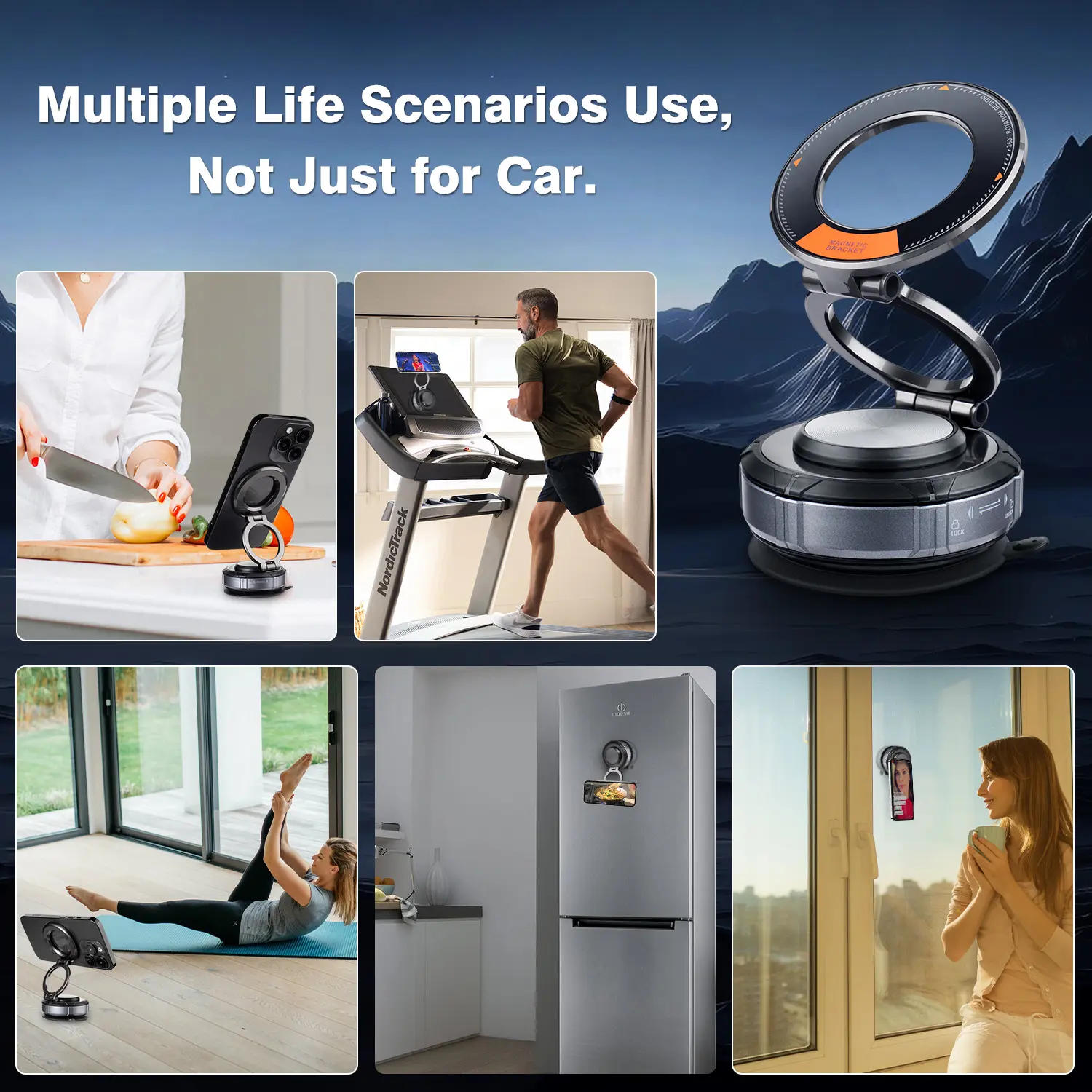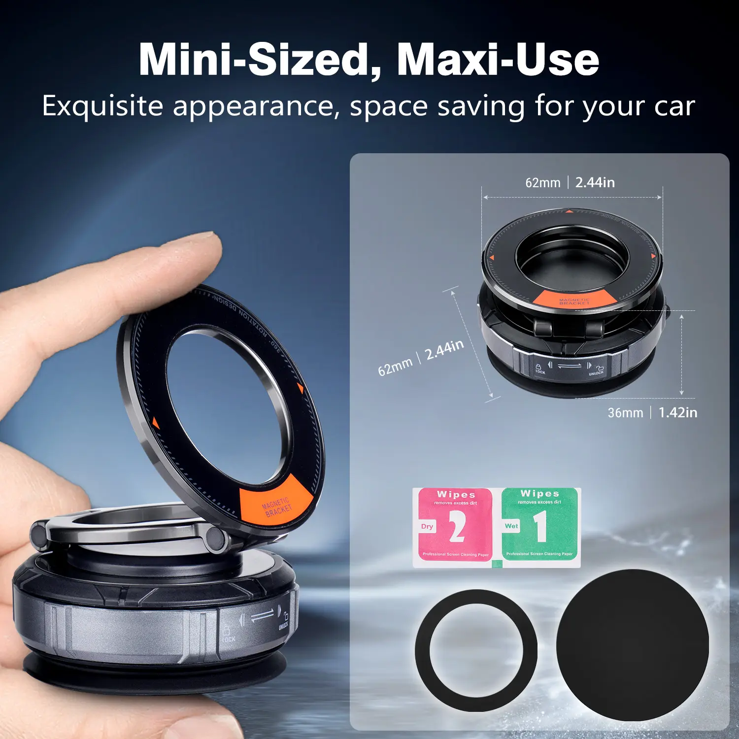 Folds down by 50% when not in use. Fits in cup holder, storage case, or pockets. Use as a magnetic phone stand in kitchens, gyms, offices. Compact and reliable for home, car, or travel.