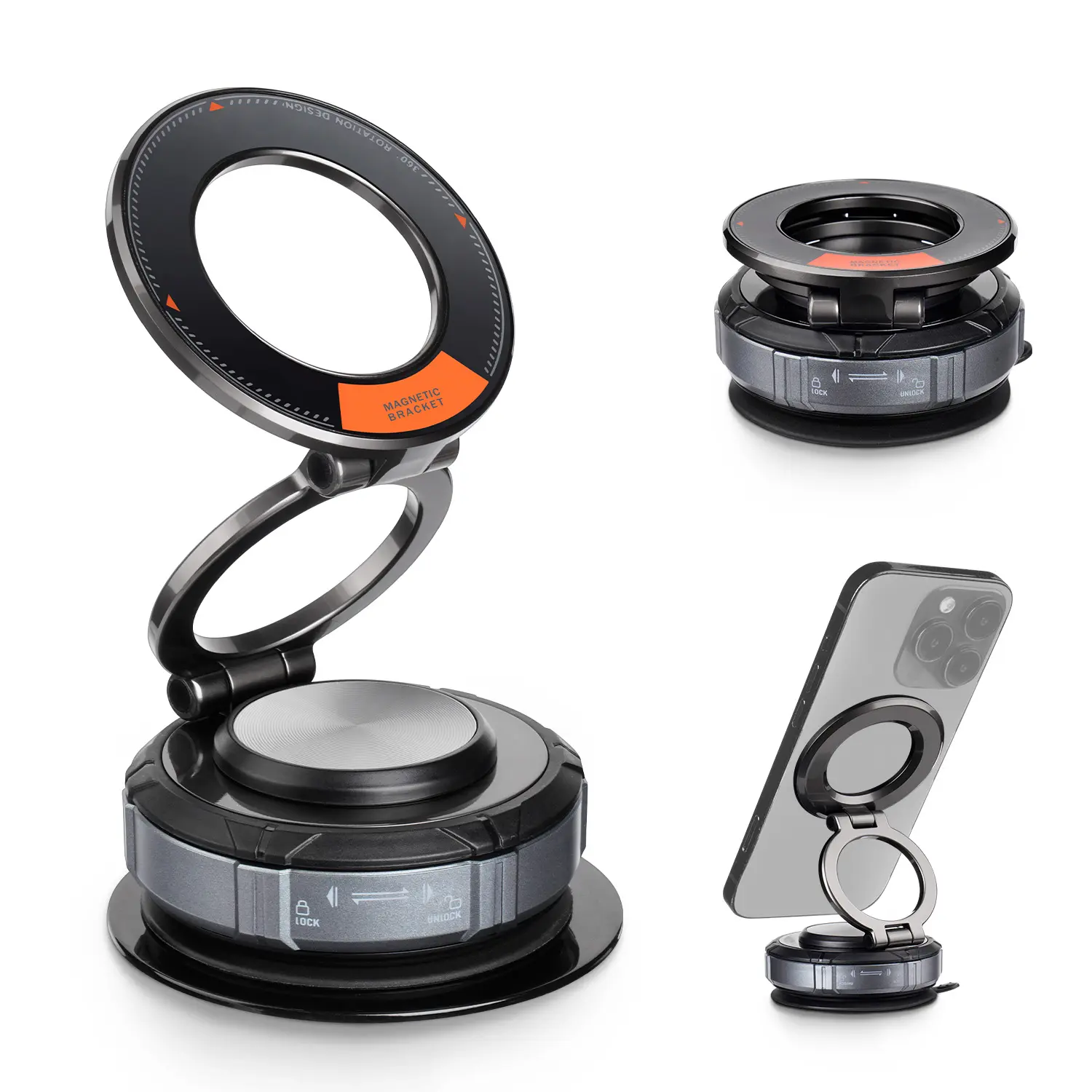 Industrial-grade zinc alloy core with bumper-like durability! Operates reliably from -40°F to 176°F (-40°C to 80°C), passing 10X impact tests. Supports up to 98lbs. Attaches firmly to windshields and dashboards without shaking. Perfect for any surface.