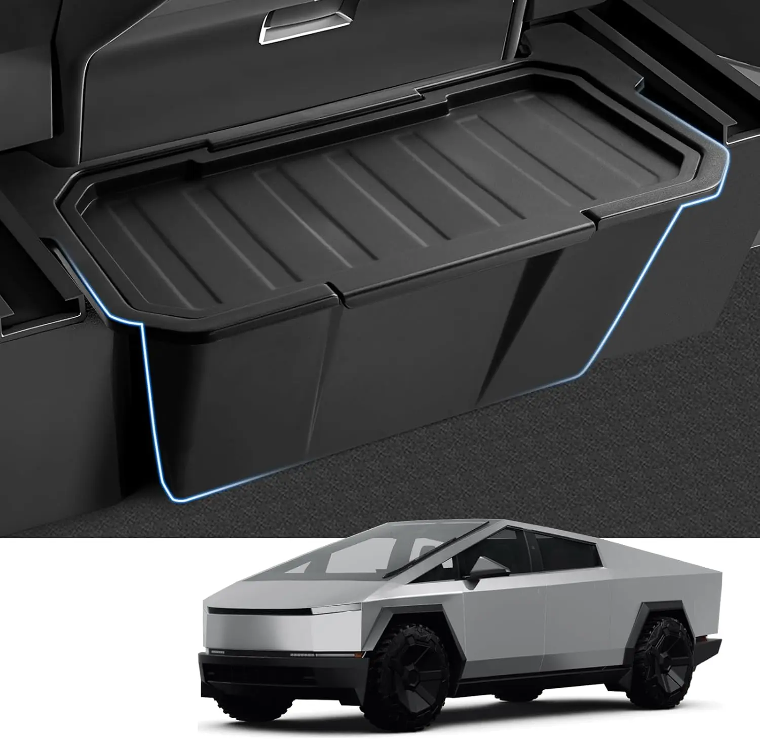 【Vehicle Specific】This Rear Floor Storage Box is specially designed for 2024-2025 Tesla Cybertruck, ensuring a perfect fit. It is tailored to the unique dimensions of the vehicle's rear floor area, providing a seamless integration with your Cybertruck.