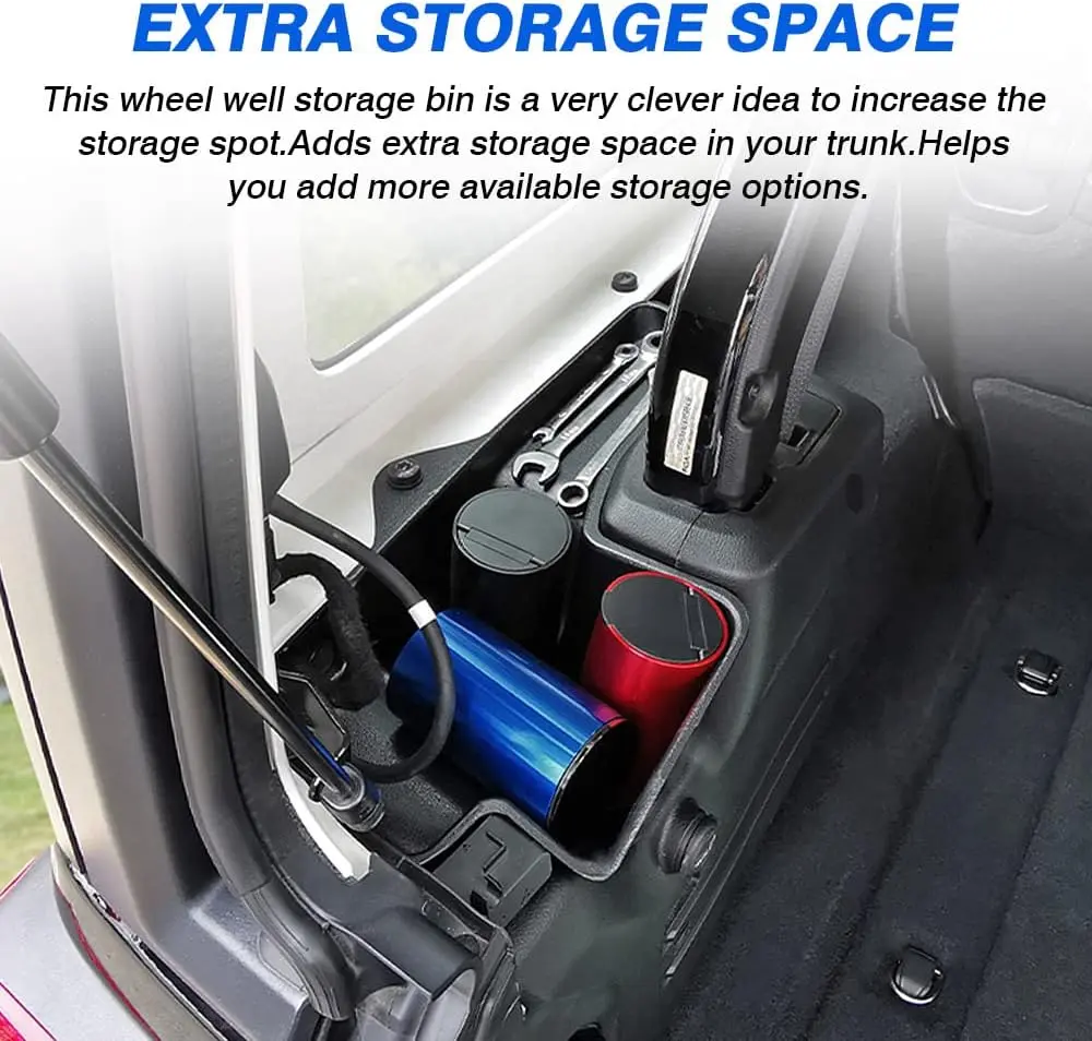 Extra Storage Space: This wheel well storage bin is a very clever idea to increase the storage spot. Adds extra storage space in your trunk. Helps you add more available storage options.