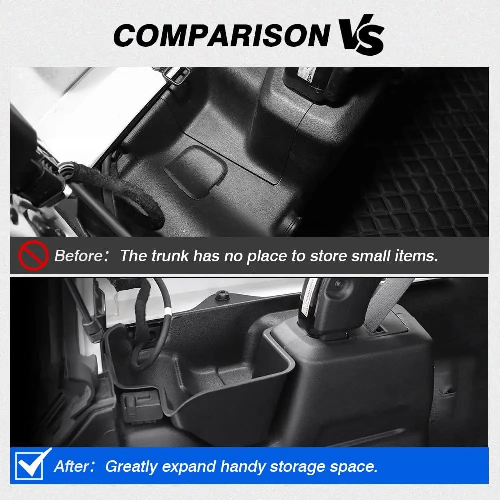 Vehicle Specific: This Rear cargo side storage organizer is custom fit for 2018 2019 2020 2021 2022 2023 Jeep Wrangler JL JLU 2/4 door. Customized according to the original car, 100% fits perfectly.