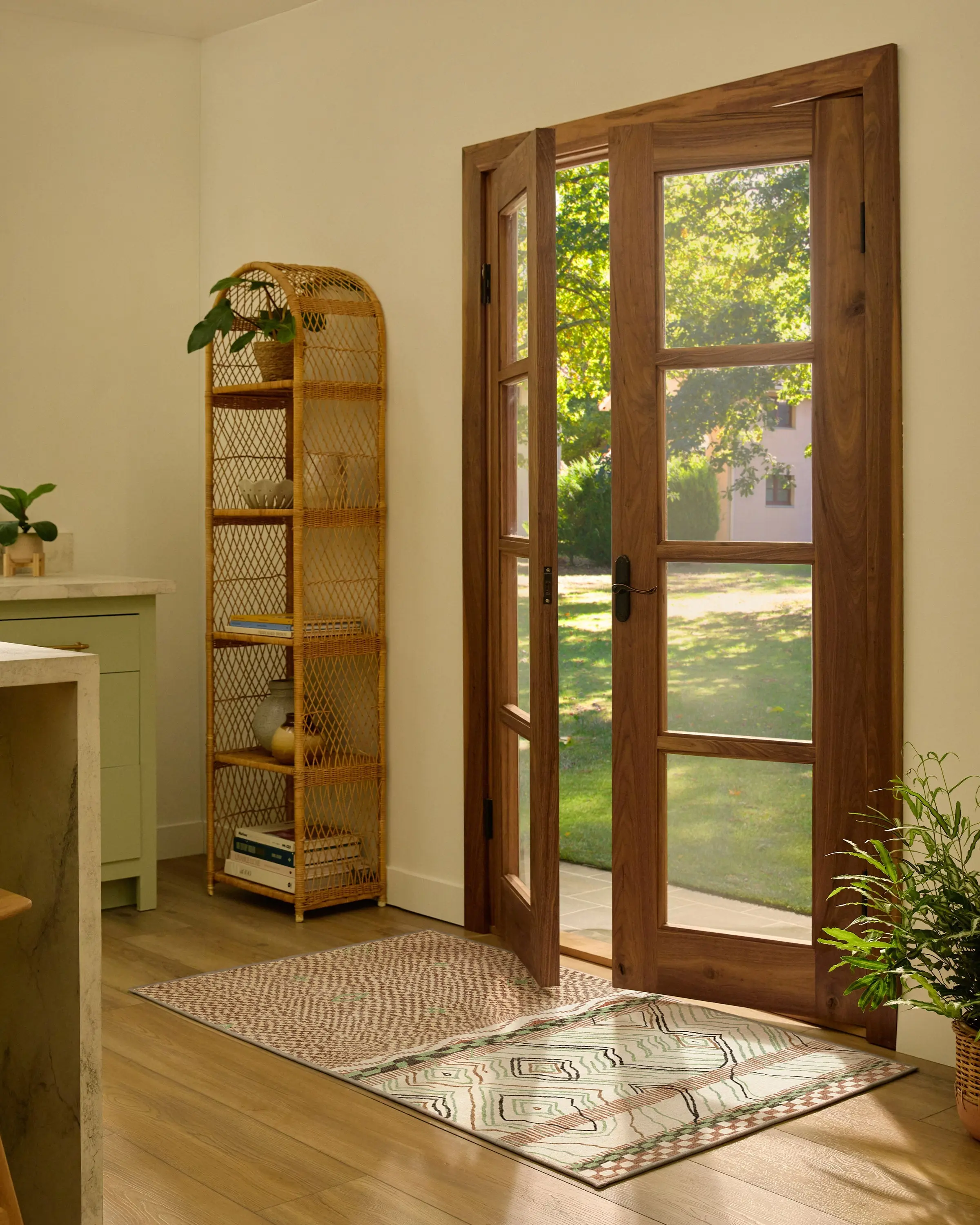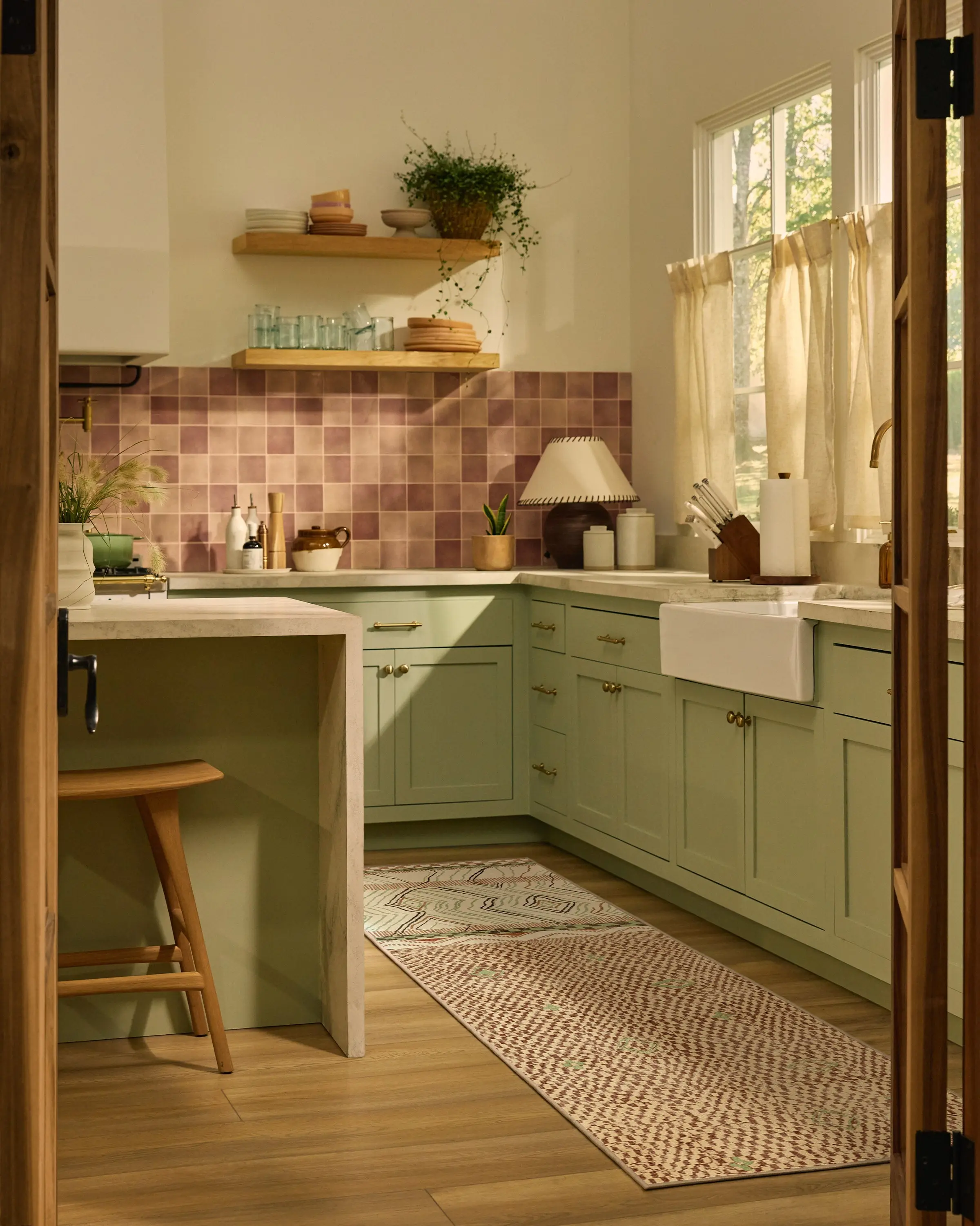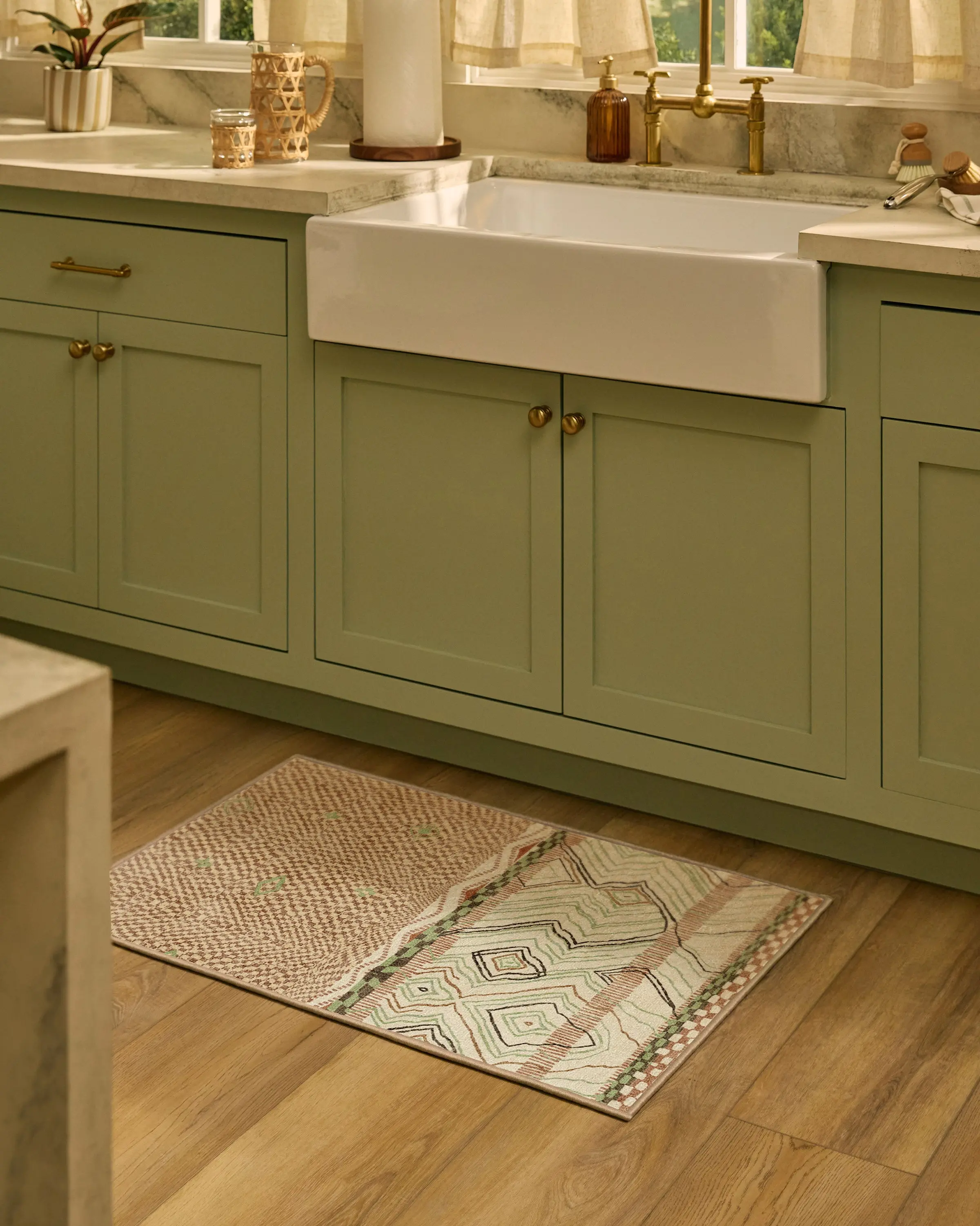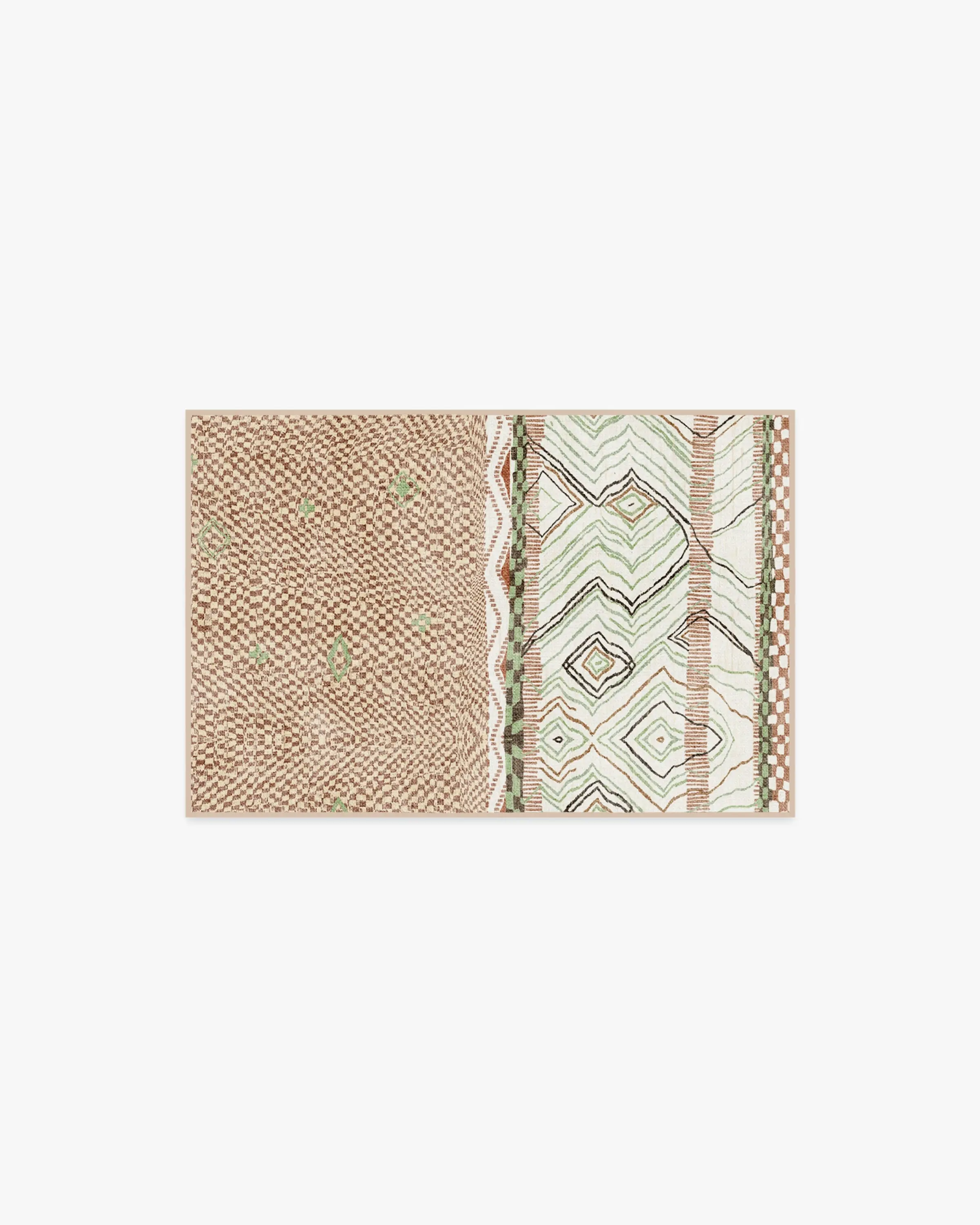 Take a laid-back approach to your home decor. Rooted in relaxed, lived-in style, the Canyon Tan & Sage Rug features an asymmetrical mix of abstract diamonds and a subtle checker detail. Soft ivory sets the tone while tan, sage, and brown accents bring gentle depth for the minimalist looking to maximize their living space. Water-resistant, stain-resistant, and fully machine-washable. Colors may vary by device and lighting.
