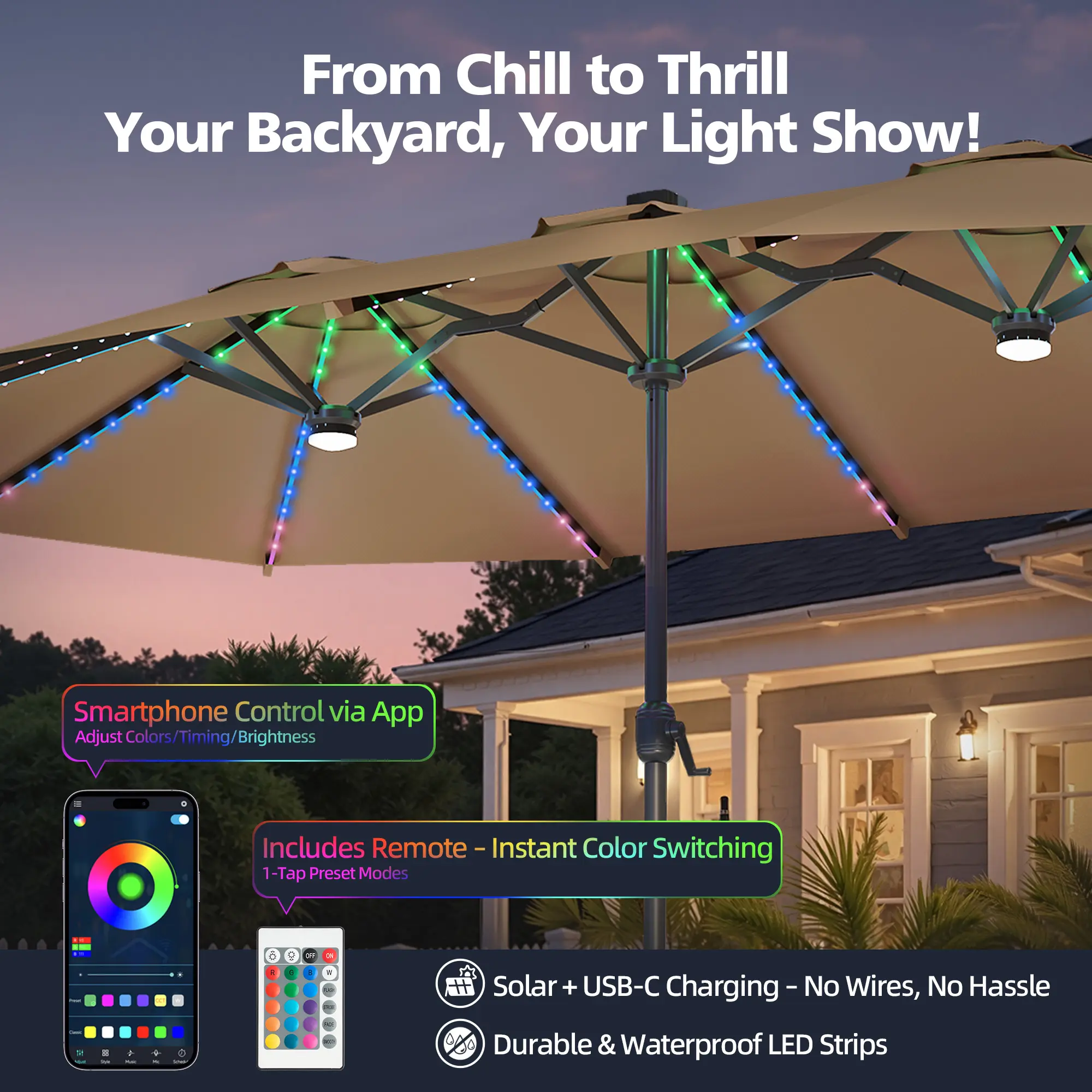 ·Solar LED Lighted: Equipped with 36 LED lights, this umbrella provides both functionality and style. The solar-powered lights enhance visibility and ambiance during evening gatherings. 🌟