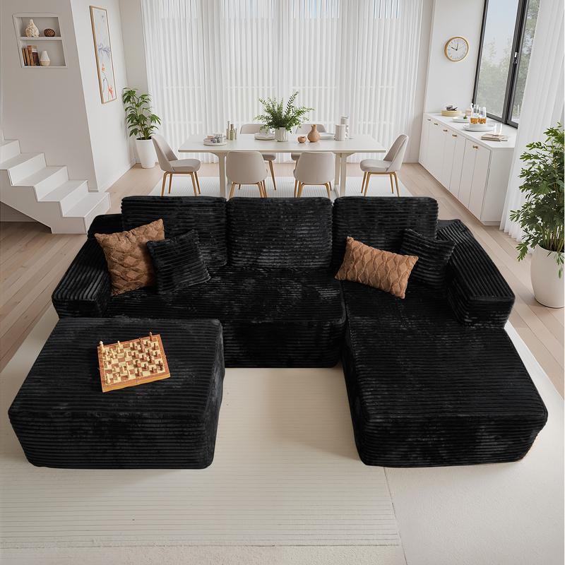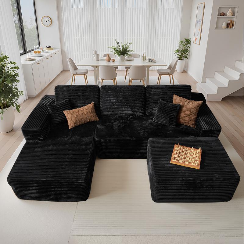 Balck Corduroy Left Chaise
