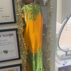 This women’s floral & butterfly, and peacock moo-moo is absolutely gorgeous & it gives silk as the texture of the gown. This is a real authentic review made by me. I do not normally purchase a lot on the TikTok shop ,but this is a great product. If you are looking for something tighter try another.