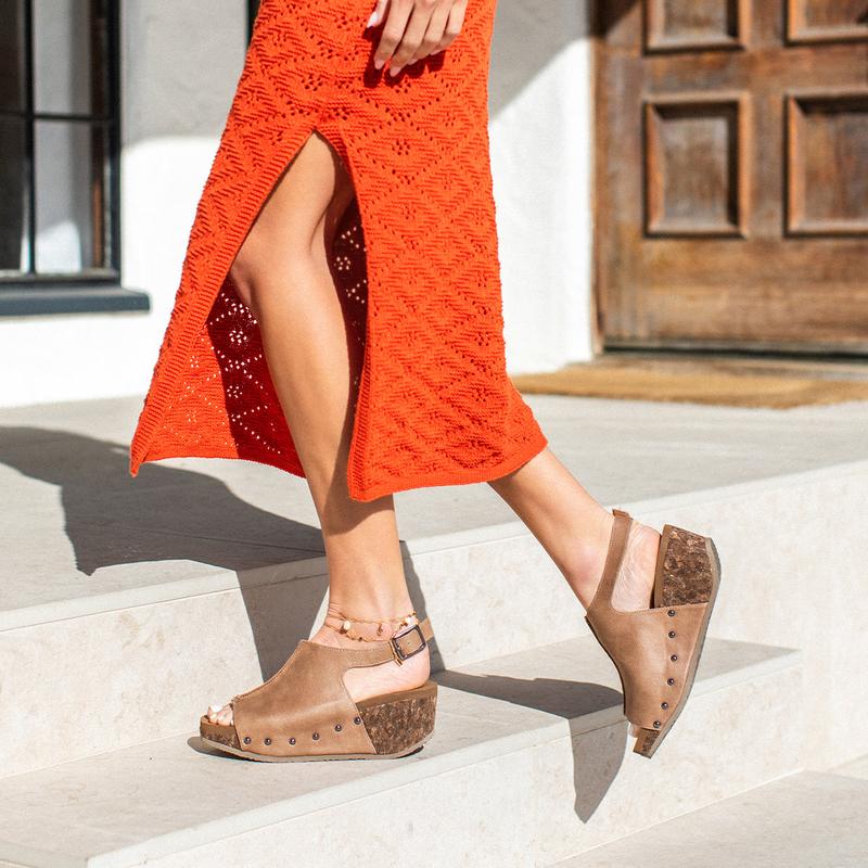 Corkys Carley Wedge Shoes in Taupe Smooth