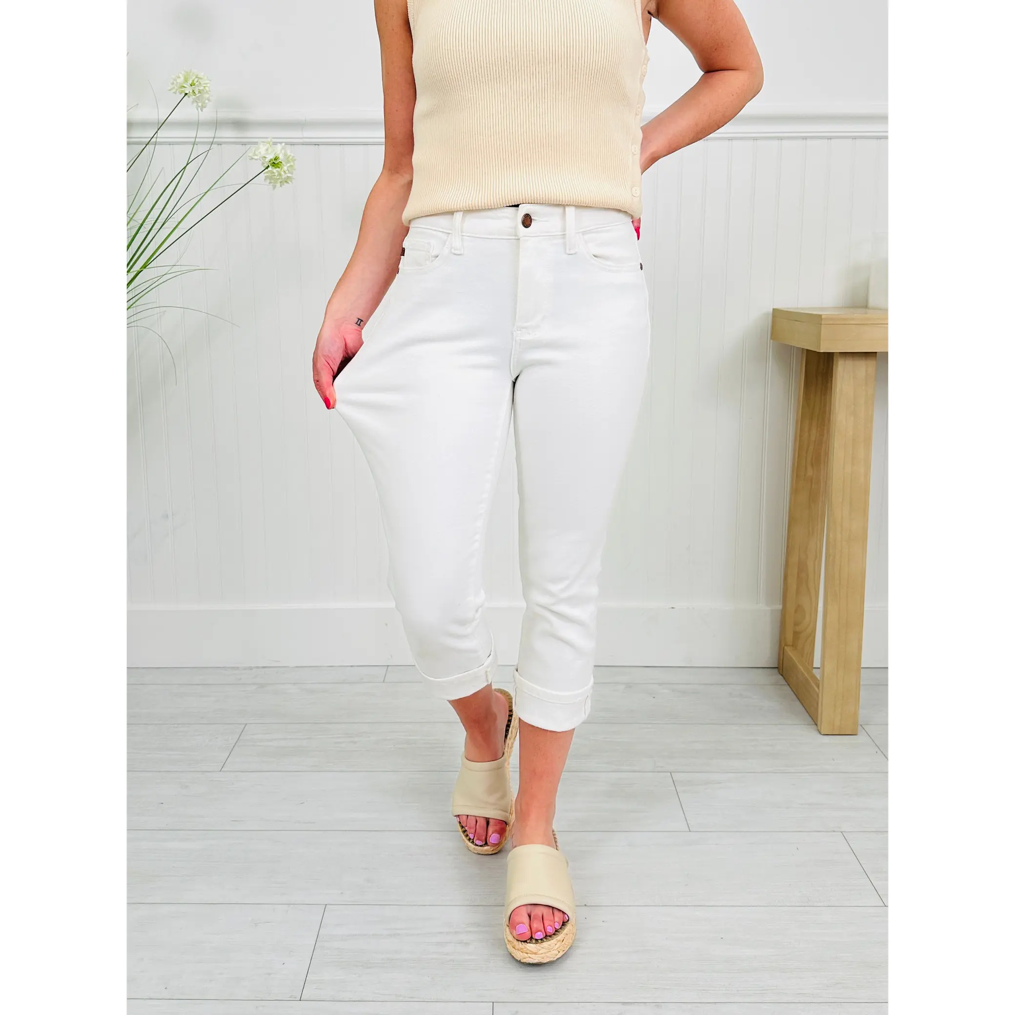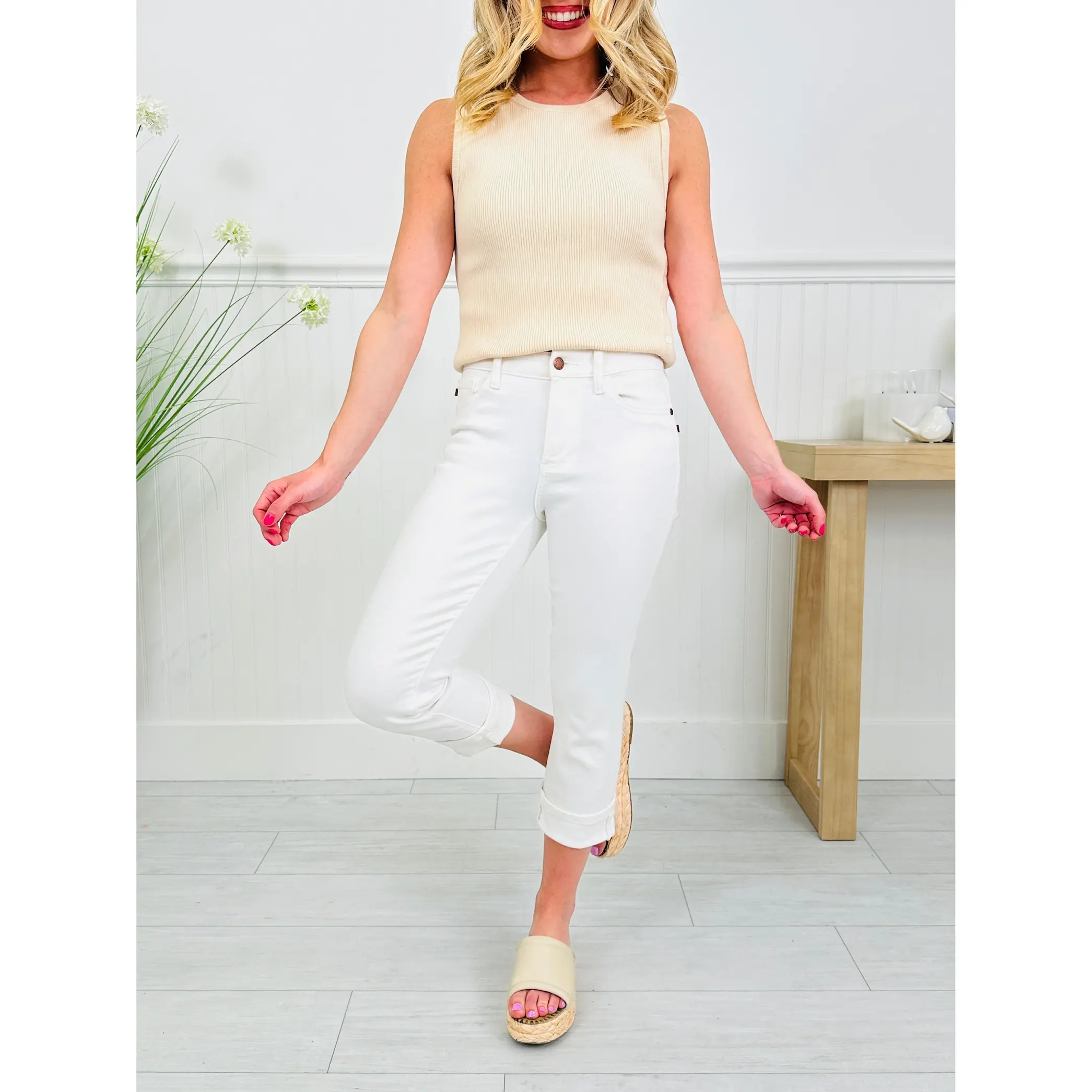 Every girl needs a pair of white capris and these are the ones you'll reach for on repeat this season. These best selling Judy Blue capri jeans are finally back in stock! They are buttery soft, stretchy, and so comfortable. Our favorite part about these jeans is that they are not see through!