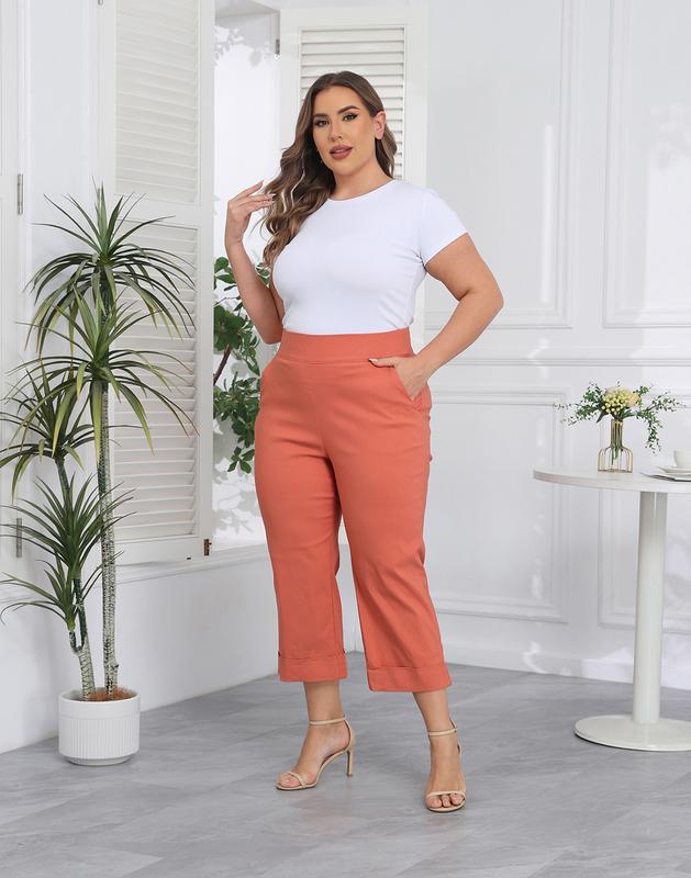 Perfect crop pant! I’m 5’3” and weigh 240, I got the 2x and they are perfect. 4 pockets and stretchy fabric. Great for the classroom, office or running errands.