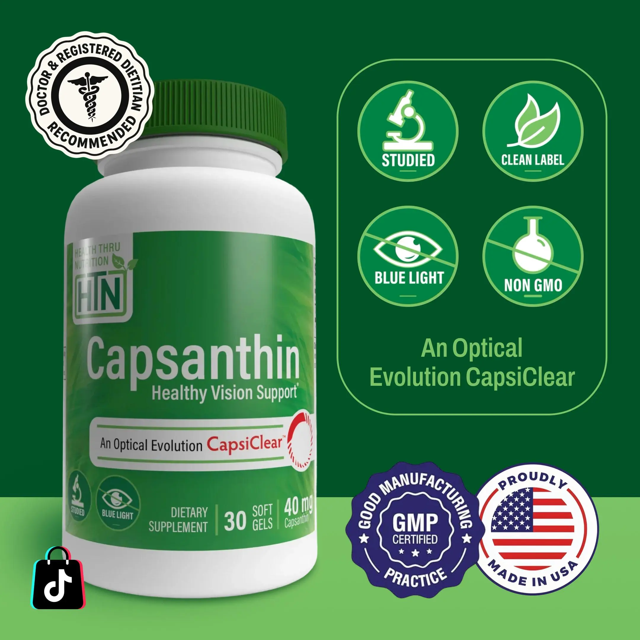 5. Health Thru Nutrition Capsanthin – 40mg as Capsiclear™ Softgels | Vision, Eye Health & Antioxidant Support Targeted Vitamins Healthcare Dietary Screen Time