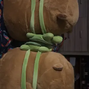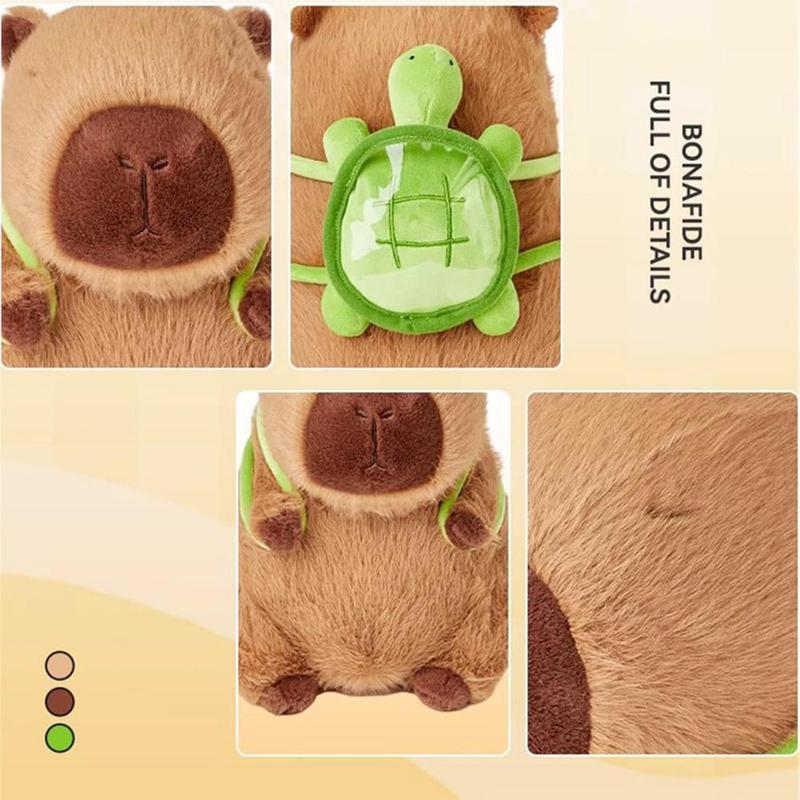 it's so cute i love it so much! So soft and can cuddle with and comes with a cute turtle backpack you can put little things in. Very cute i love capybaras
