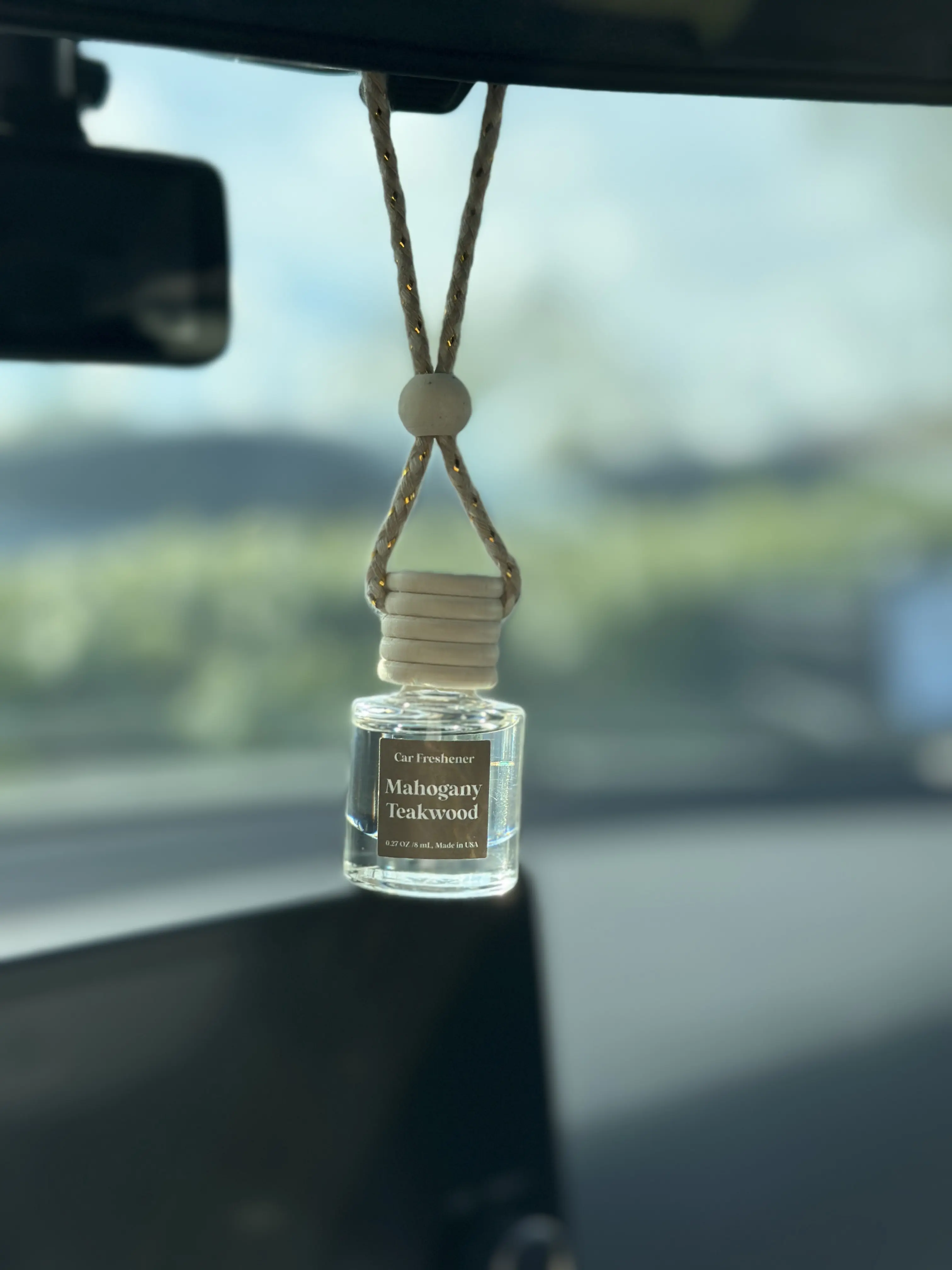 4. Turn the glass bottle upright and hang it on your rearview mirror.
