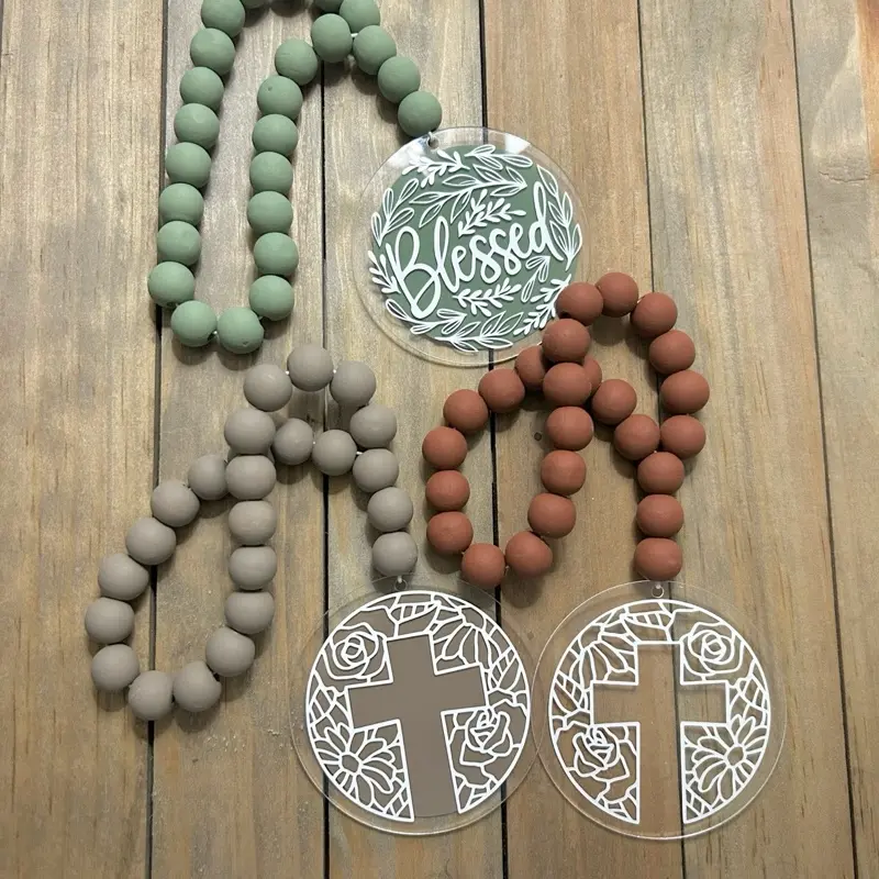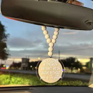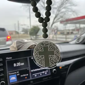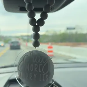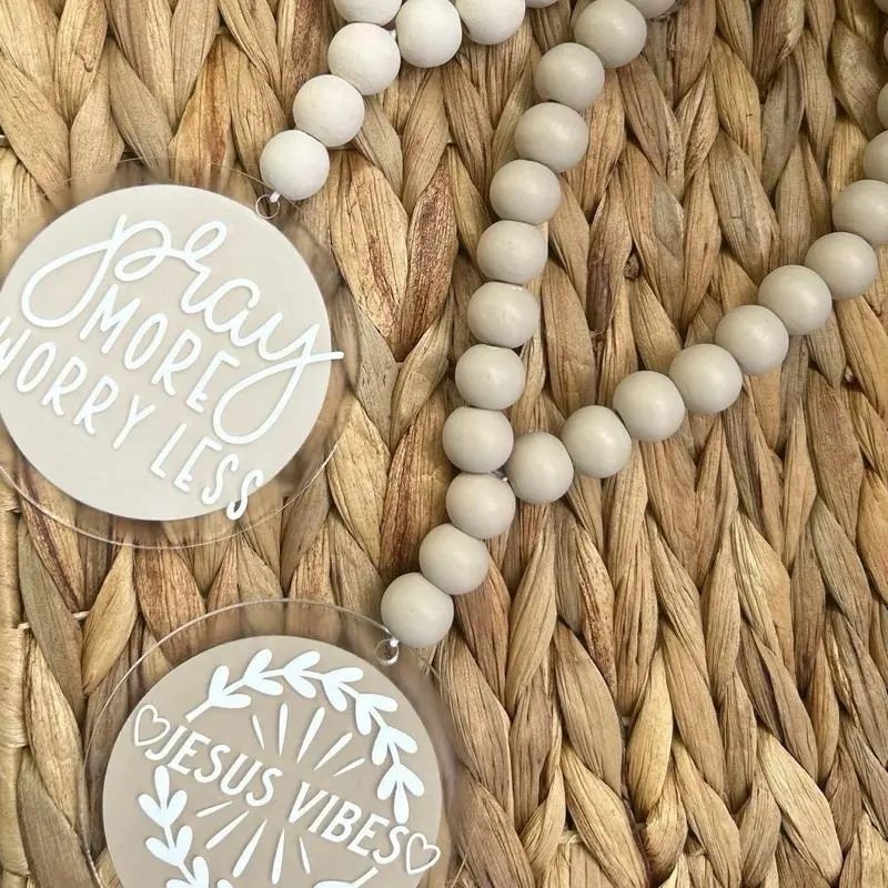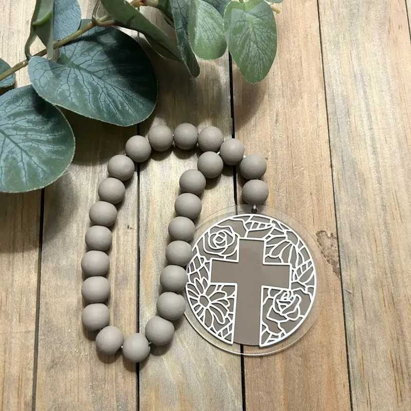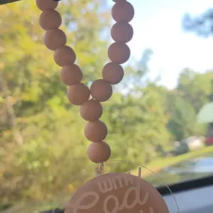 Christian Wood Bead Rearview Mirror Car Charm- Christian car accessories