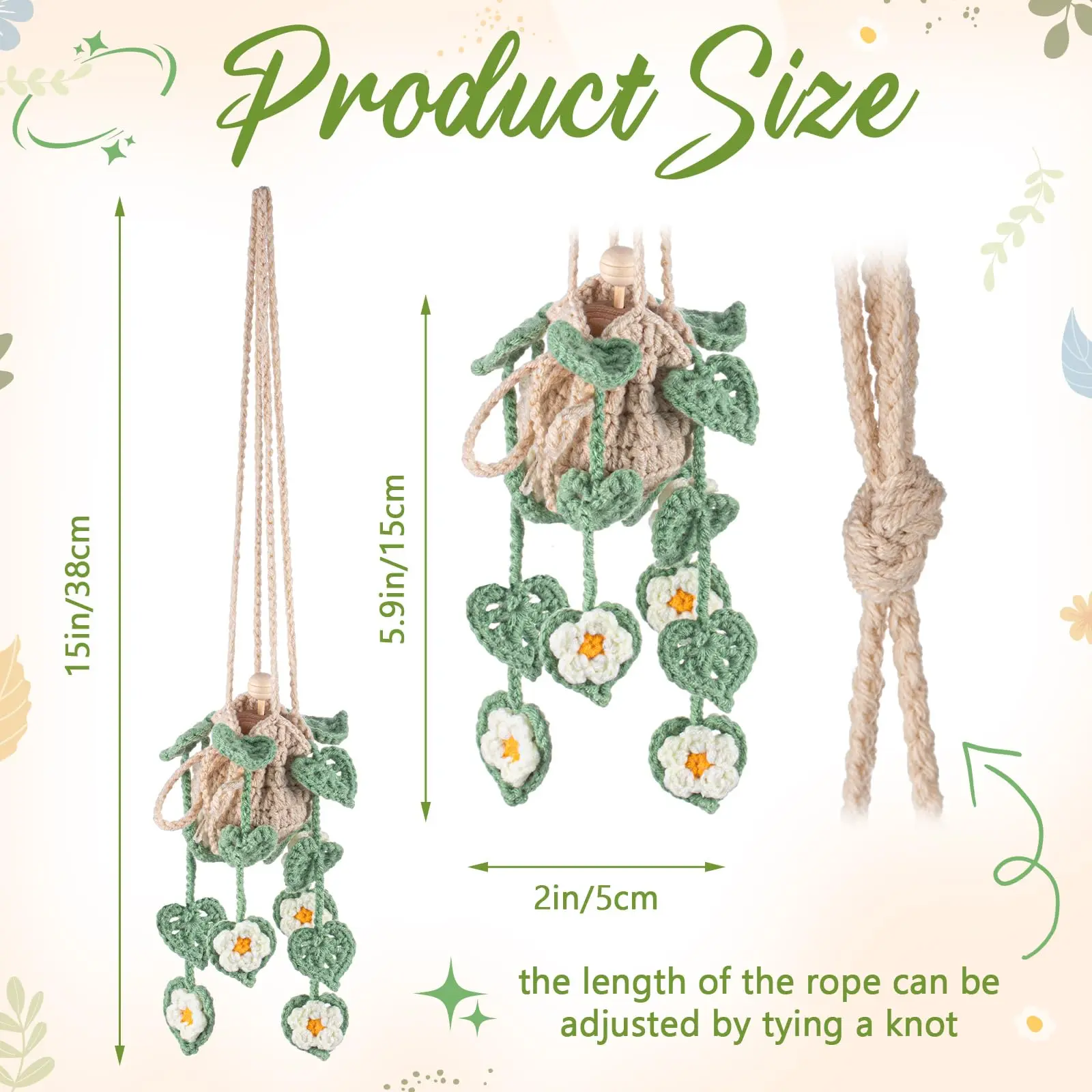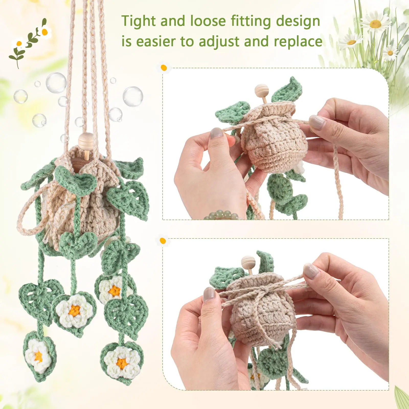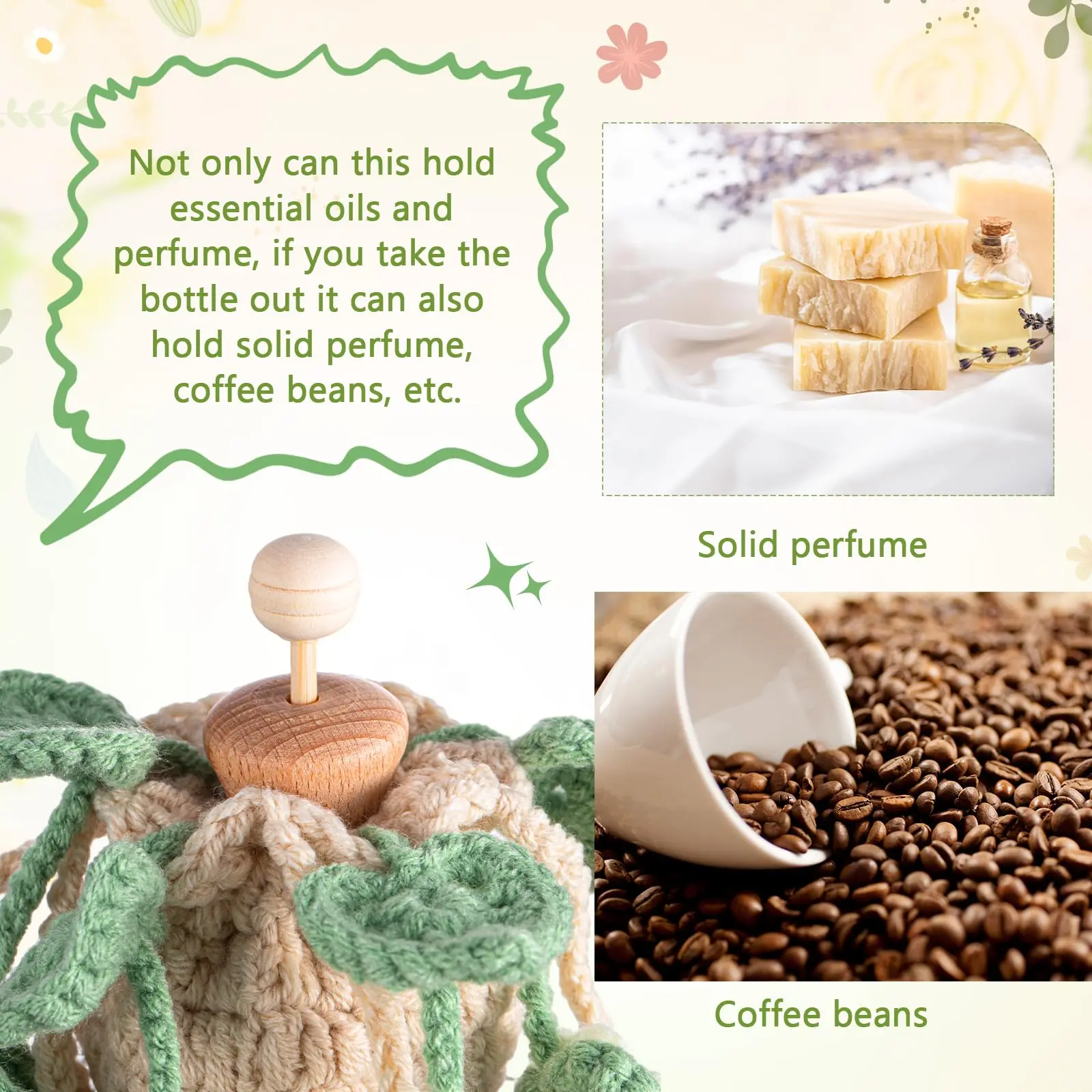 ·Quality Material: keeping your car fresh and fragrant with the refillable car diffuser bottle with crochet plant for car; Crafted from durable woven material and glass, this sturdy piece is designed to endure everyday use, offering you a long term of use