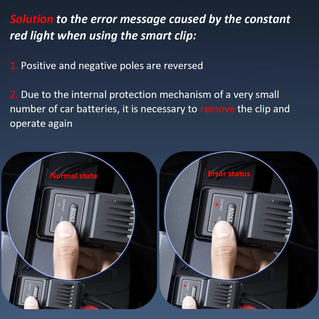 A powerful power core derived from drone technology ensures stable performance in extreme conditions. Whether cold winter or hot summer, Kopuo injects strong power into your car's engine. Start your car with just one click without delay. The smart clamp uses advanced intelligent recognition technology. It automatically detects positive and negative polarities, avoiding short circuits.