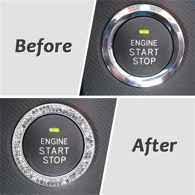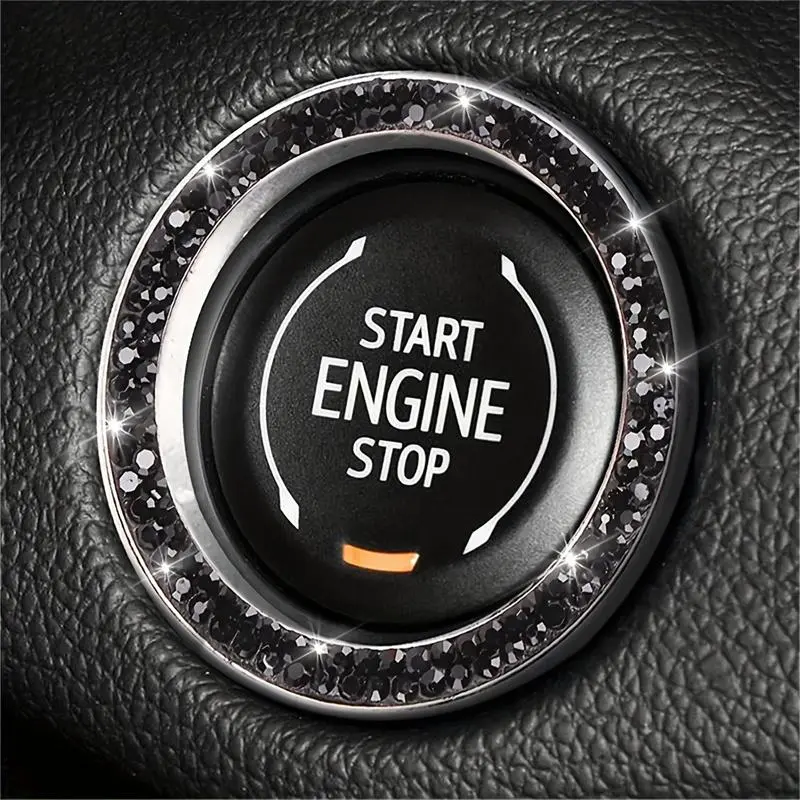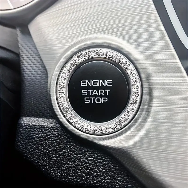 Rhinestone Decor Car Engine Start Stop Button Ring, Car Engine Start Stop Button Decoration Circle, Car Interior Accessories for Women, Car Decorations, Sticker for Cars