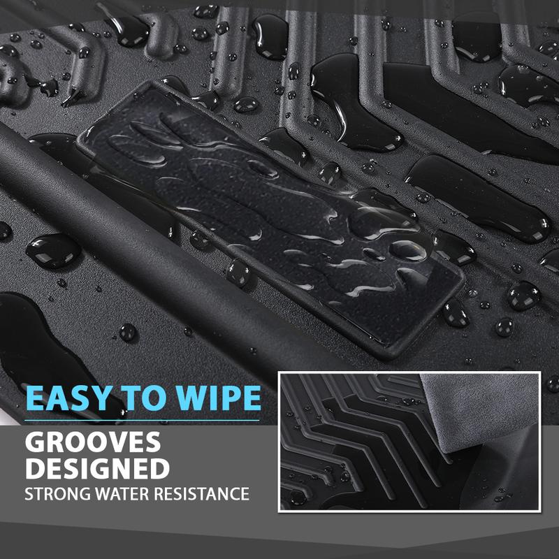 The Floor Mats are waterproof and has excellent crease recovery, they will protect your vehicle against spills, debris, rain, snow, and mud in any weather condition.