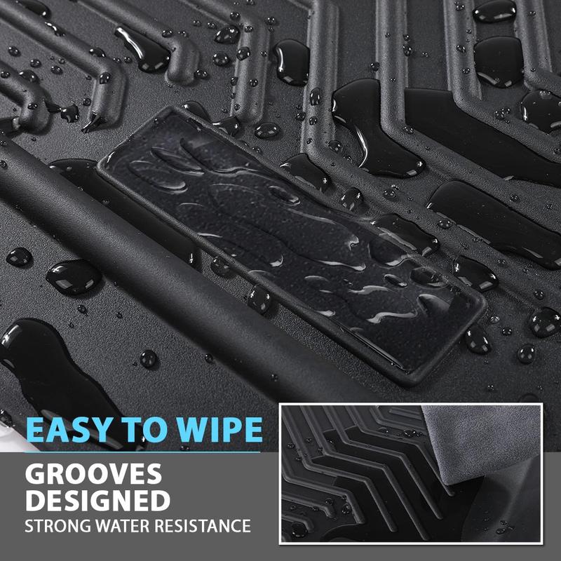 The Floor Mats are waterproof and has excellent crease recovery, they will protect your vehicle against spills, debris, rain, snow, and mud in any weather condition.