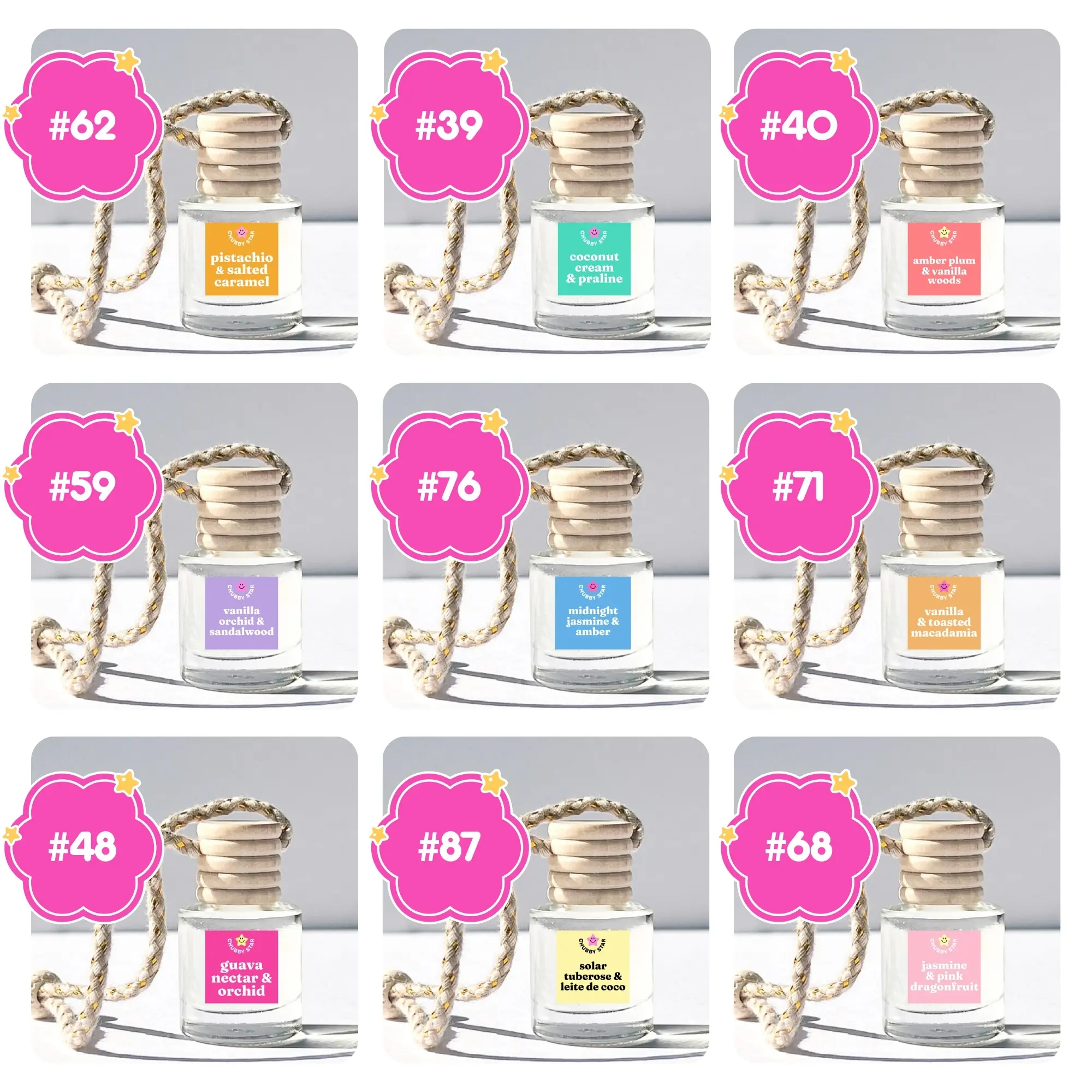 Add some fun and pleasant smells to your daily commute with our Brazilian Scented Car Fresheners. It is the cutest way to make your car smell and look good! Each hanging scented car freshener is 10 mL and comes pre-filled with your favorite fragrance.